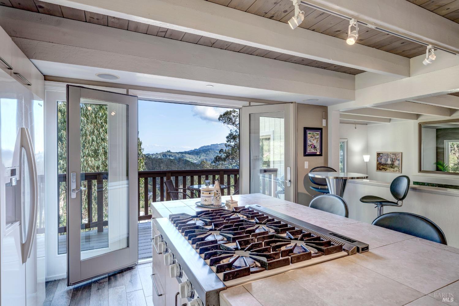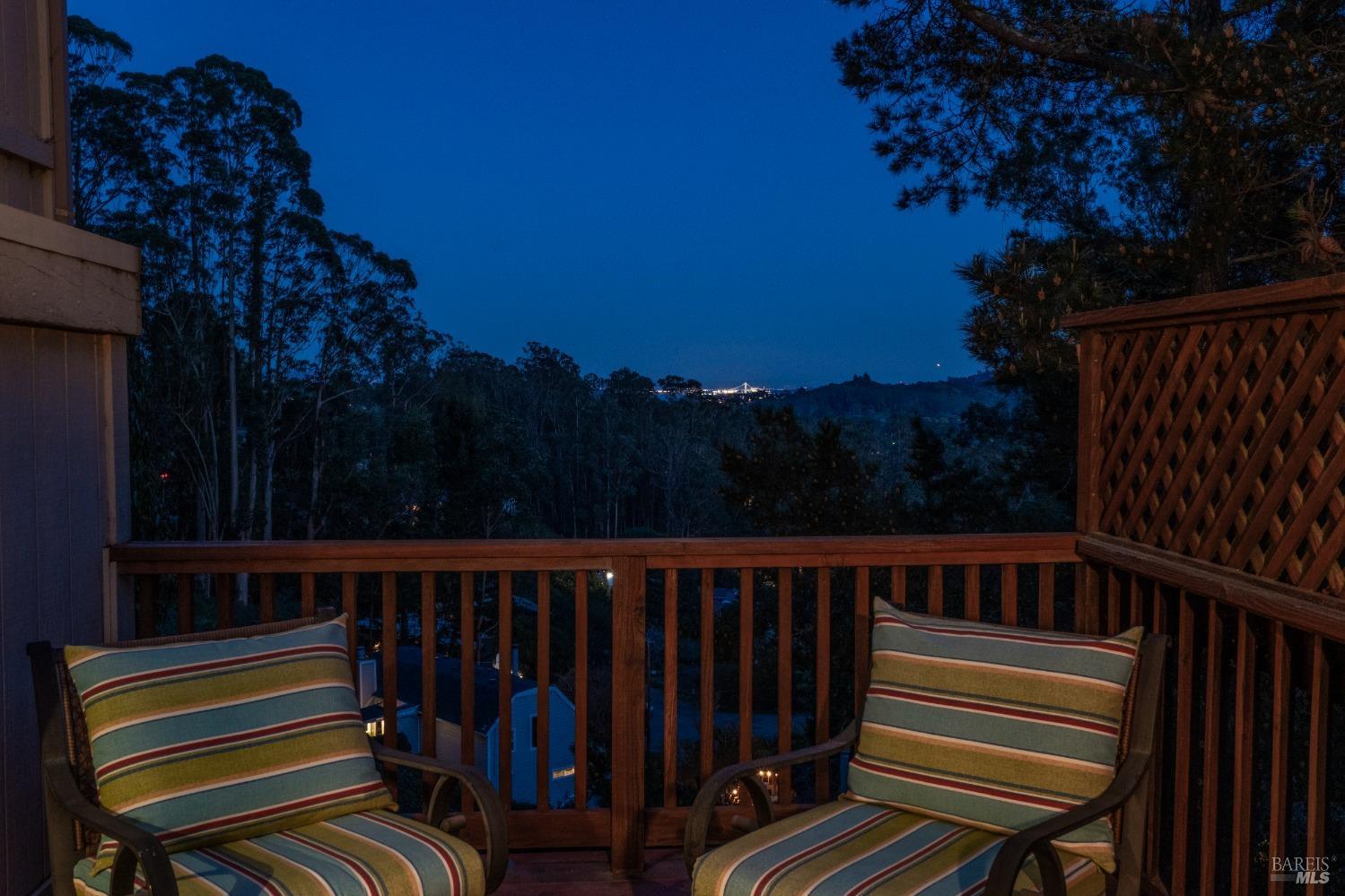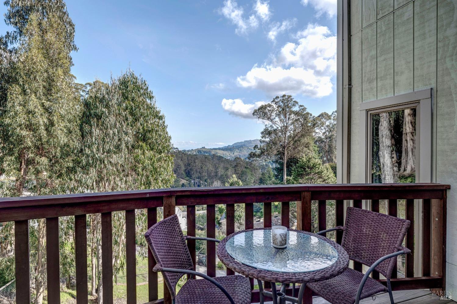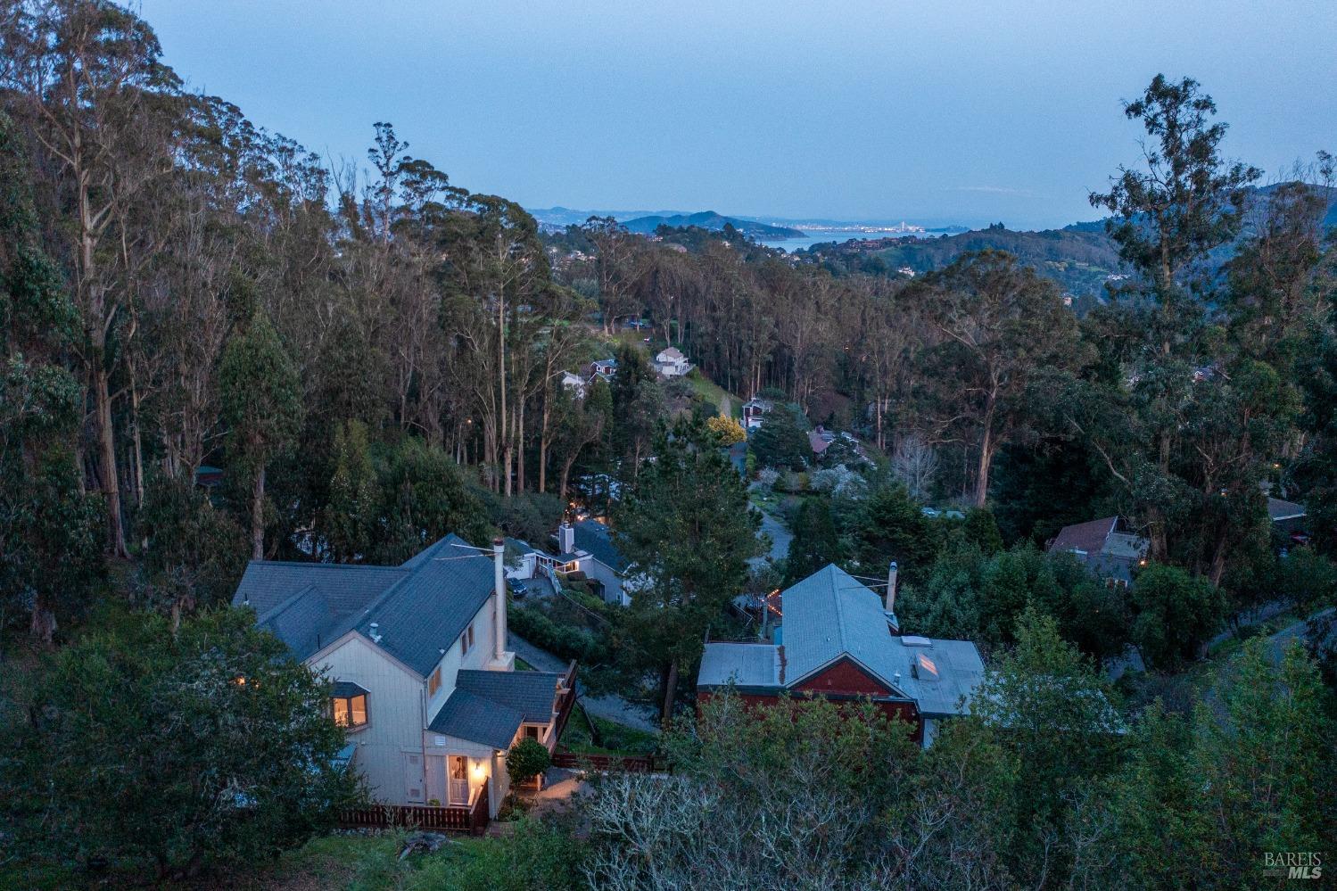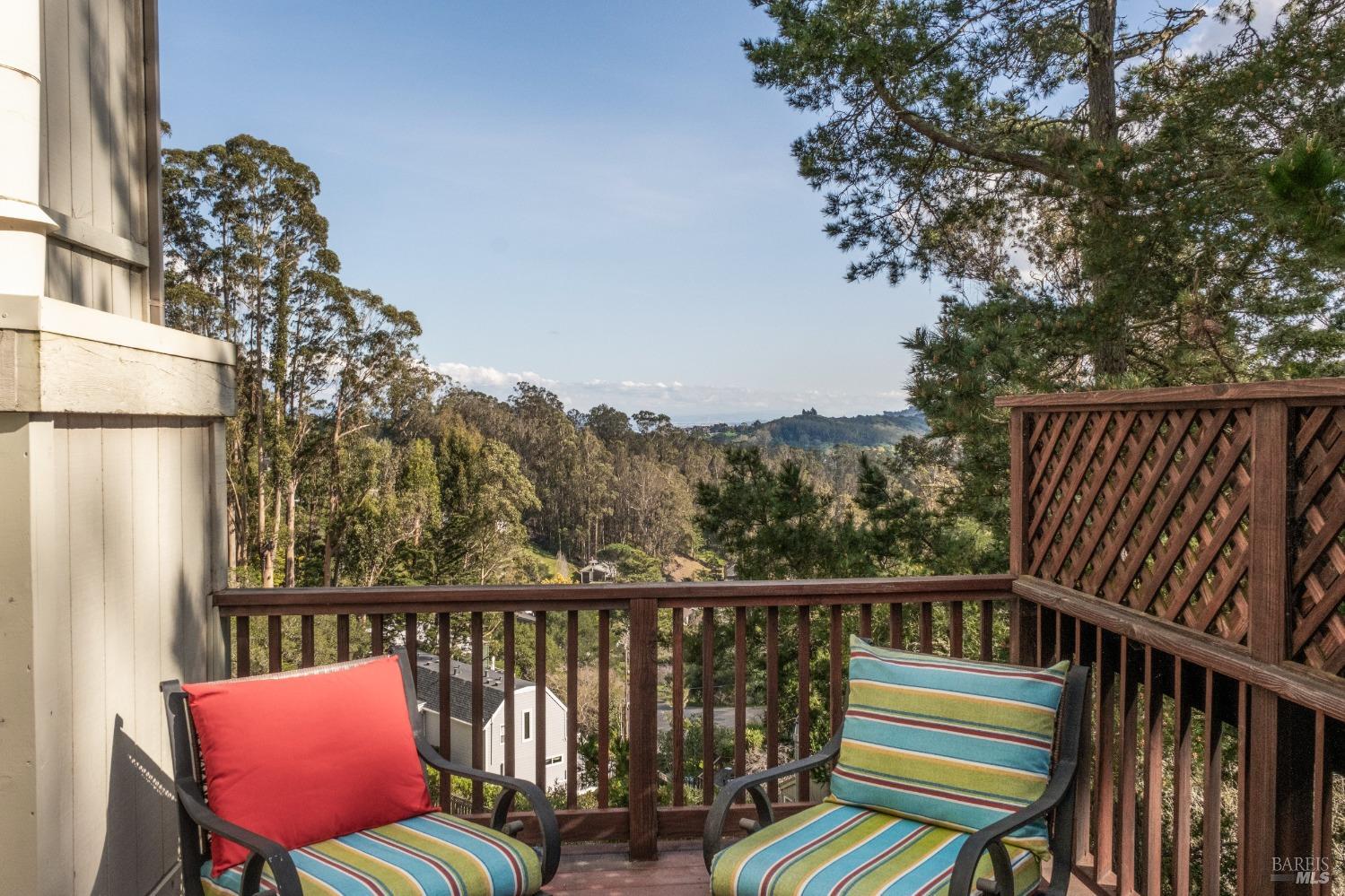 Nestled in a private setting, this stunning property seamlessly blends breathtaking views, natural beauty, and refined living. The sunken living room has vaulted ceilings & expansive windows that showcase views of the Bay Bridge and the East Bay hills. The gourmet kitchen, a haven for culinary enthusiasts and entertainers alike, is equipped with a six-top Viking range, double oven, two sinks, & complemented by an adjacent deck. The upper level features the primary suite - a showstopper - where cozy fireside evenings await and the sunrise greets you as you start the day in a spa-like bathroom. Two additional bedrooms, conveniently connected to a shared bathroom, complete the second story. The fourth bedroom, with ensuite bathroom, located on the main level, offers versatile use as a family room or media space. Meticulously maintained by a single owner for the past 35 years, this move-in ready home exudes pride of ownership. Parking for two cars and ample storage area add to the convenience. Embrace the outdoor lifestyle with proximity to the Golden Gate National Recreation Area, offering endless opportunities for hiking, biking, and beach adventures. Easy access to Mill Valley's vibrant culinary scene, upscale boutiques, award winning schools and Highway 101.