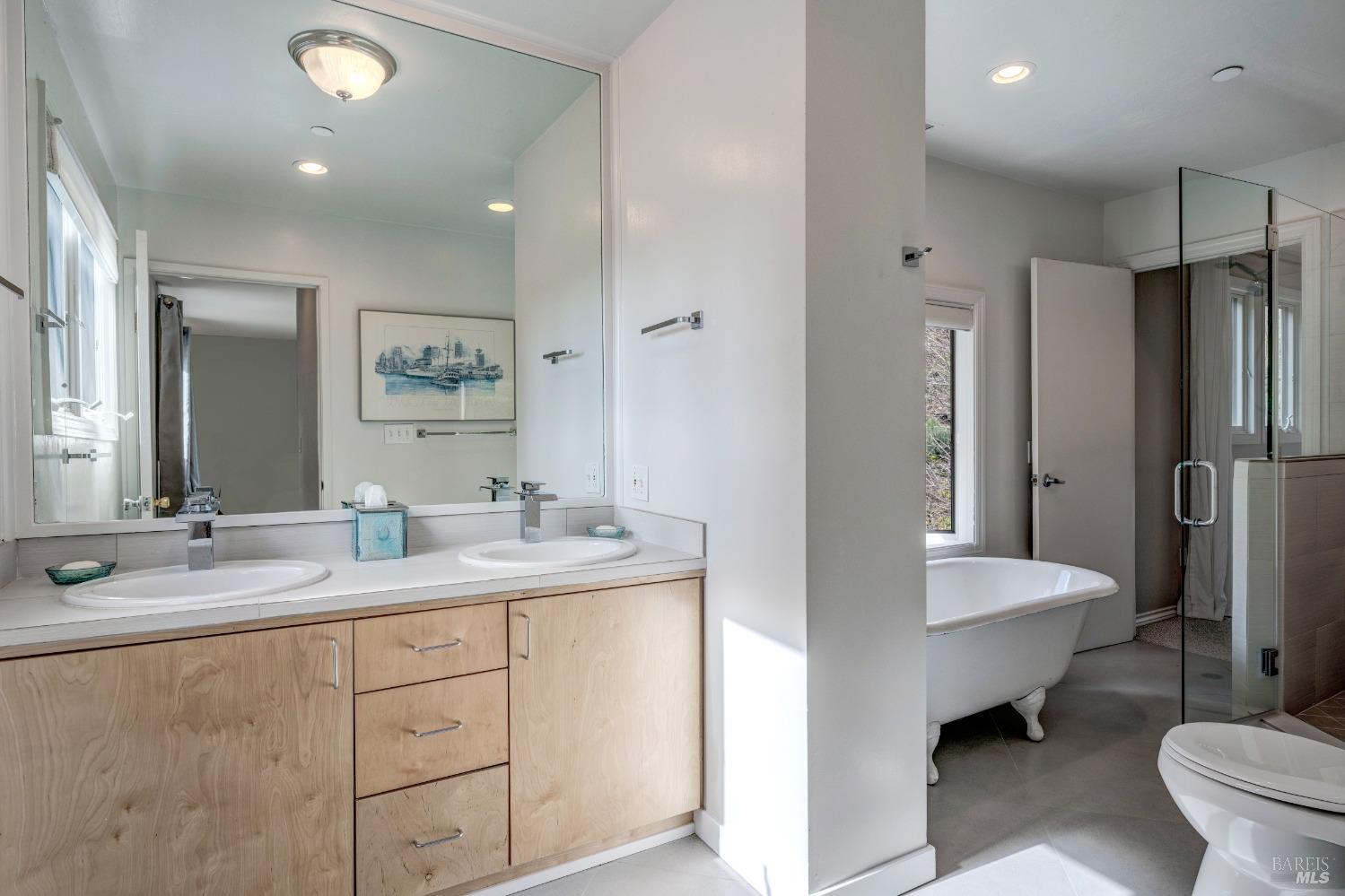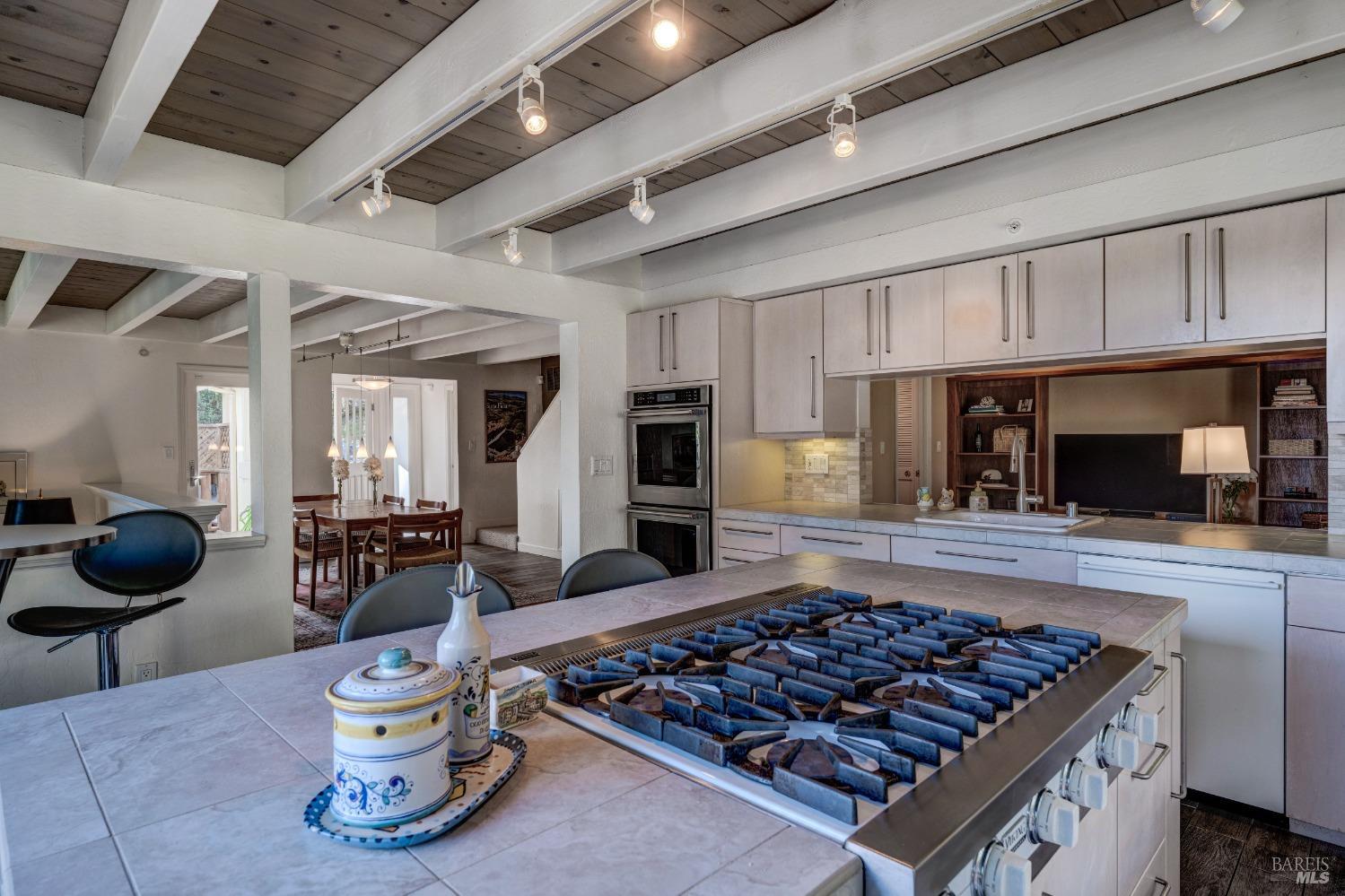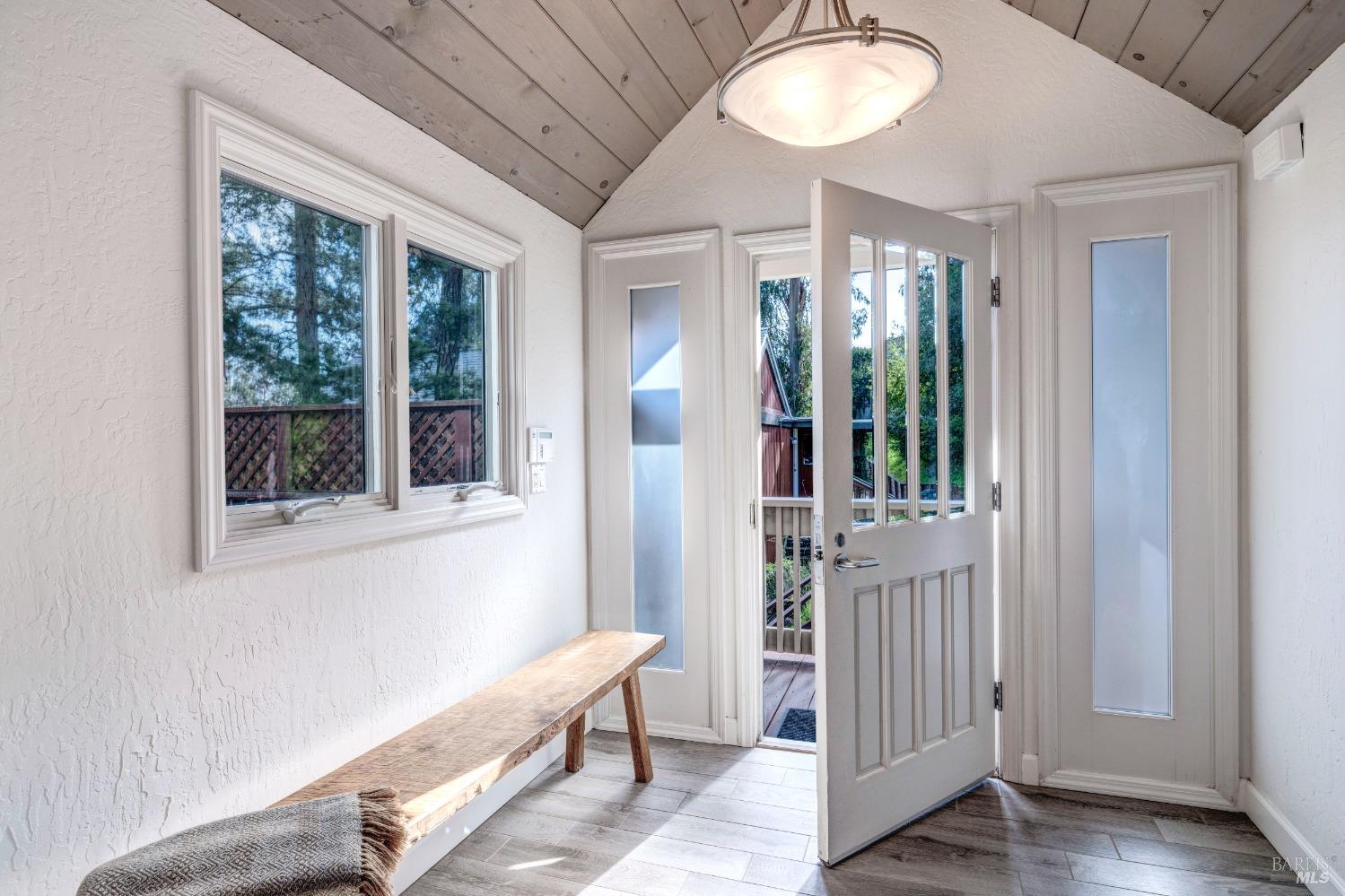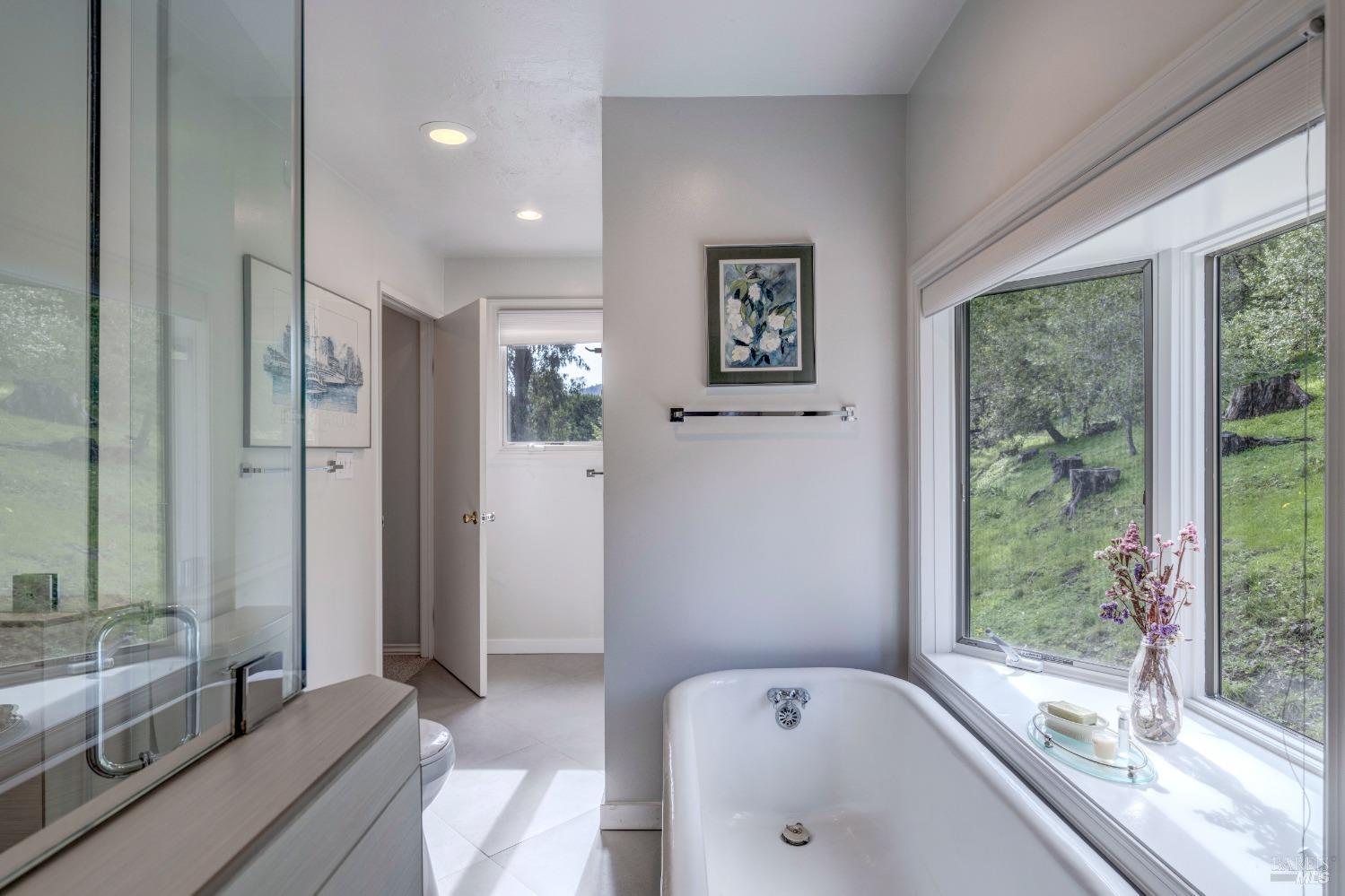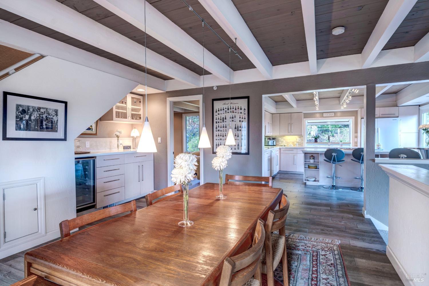 Nestled in a private setting, this stunning property seamlessly blends breathtaking views, natural beauty, and refined living. The sunken living room has vaulted ceilings & expansive windows that showcase views of the Bay Bridge and the East Bay hills. The gourmet kitchen, a haven for culinary enthusiasts and entertainers alike, is equipped with a six-top Viking range, double oven, two sinks, & complemented by an adjacent deck. The upper level features the primary suite - a showstopper - where cozy fireside evenings await and the sunrise greets you as you start the day in a spa-like bathroom. Two additional bedrooms, conveniently connected to a shared bathroom, complete the second story. The fourth bedroom, with ensuite bathroom, located on the main level, offers versatile use as a family room or media space. Meticulously maintained by a single owner for the past 35 years, this move-in ready home exudes pride of ownership. Parking for two cars and ample storage area add to the convenience. Embrace the outdoor lifestyle with proximity to the Golden Gate National Recreation Area, offering endless opportunities for hiking, biking, and beach adventures. Easy access to Mill Valley's vibrant culinary scene, upscale boutiques, award winning schools and Highway 101.