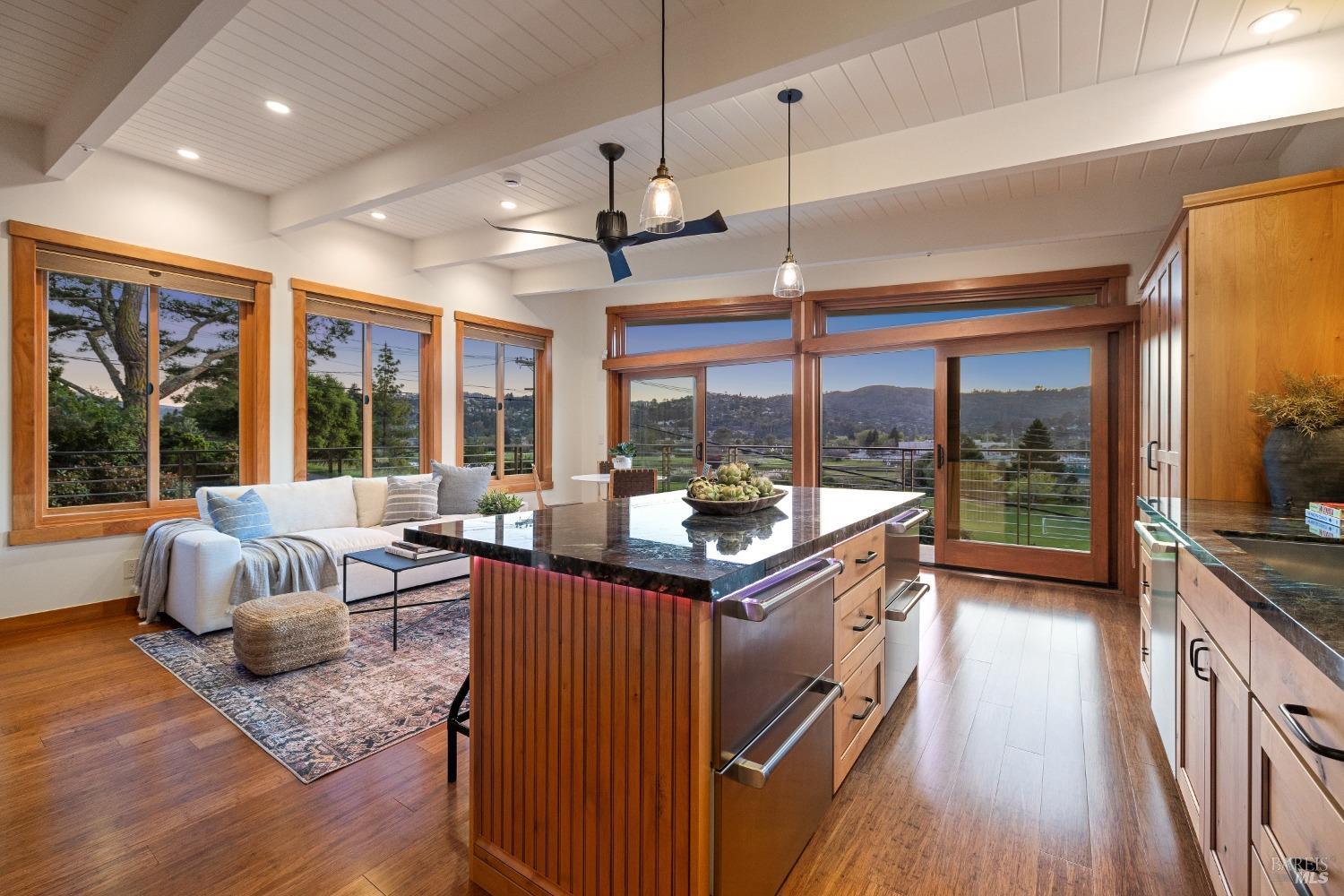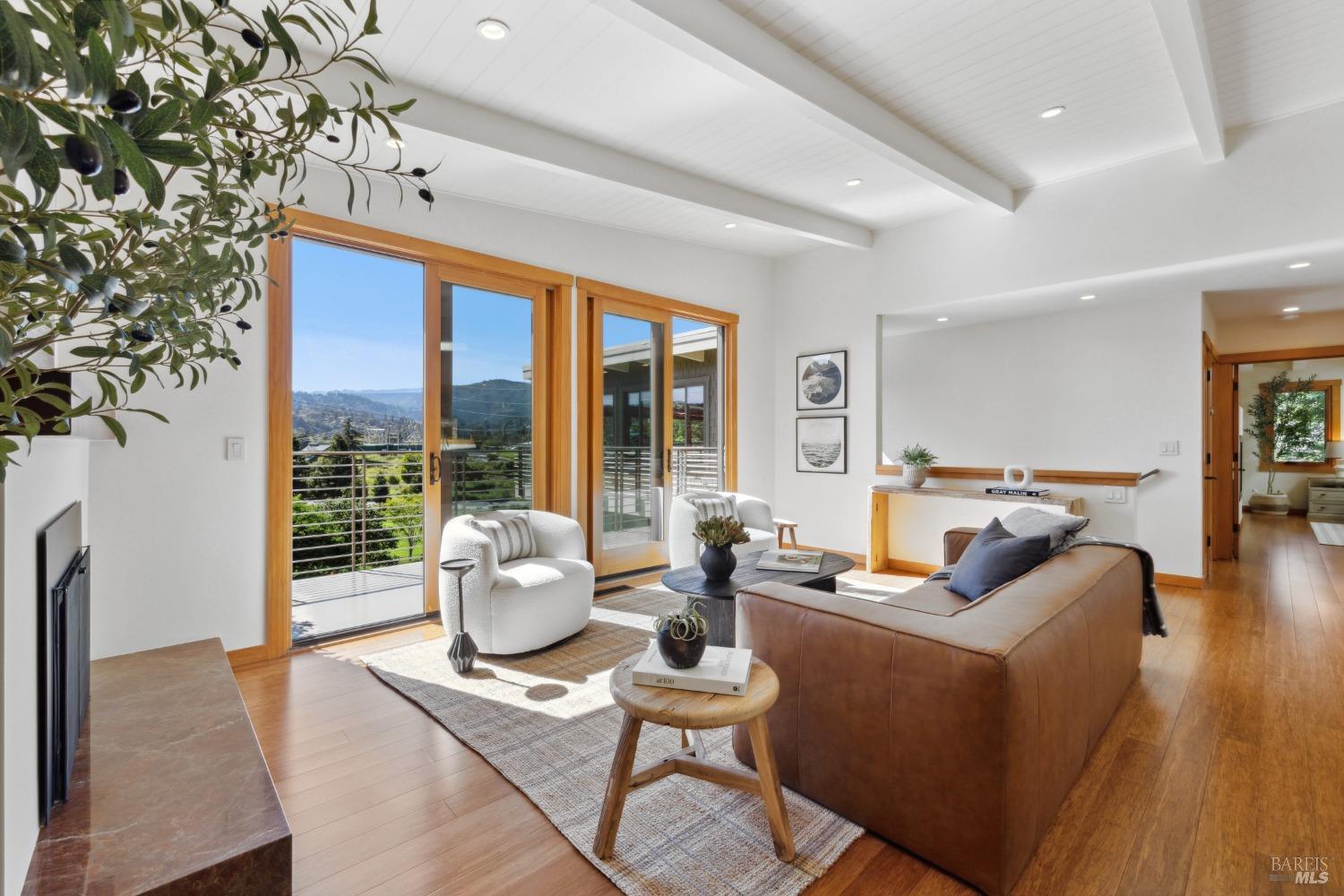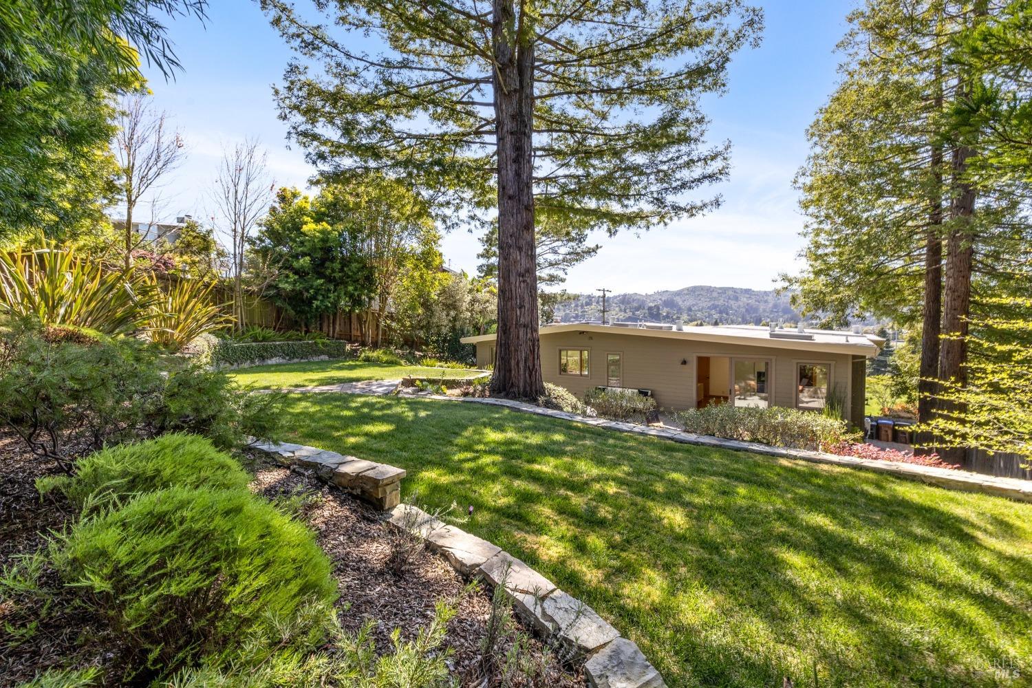 Exceptional Mid Century home in prime Mill Valley location with views of Hauke Park, Mt Tam and surrounding ridge lines. Completely updated including electrical, plumbing, windows, siding, kitchen, baths, and new roof. Wonderfully light and bright. Huge primary suite located on main level. Spectacular garden oasis grounds with peaceful large patios, terraces and level yard. Spacious ADU and garage were built in 2013. Numerous built ins throughout. The ultimate in convenience and lifestyle! Easy walk to parks, school, community center, and trails. Bring your toothbrush and move in.