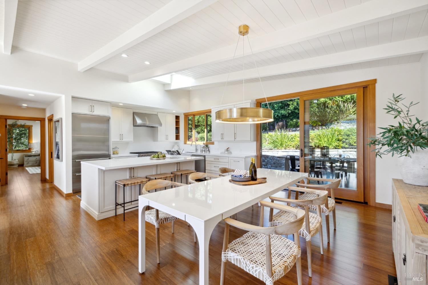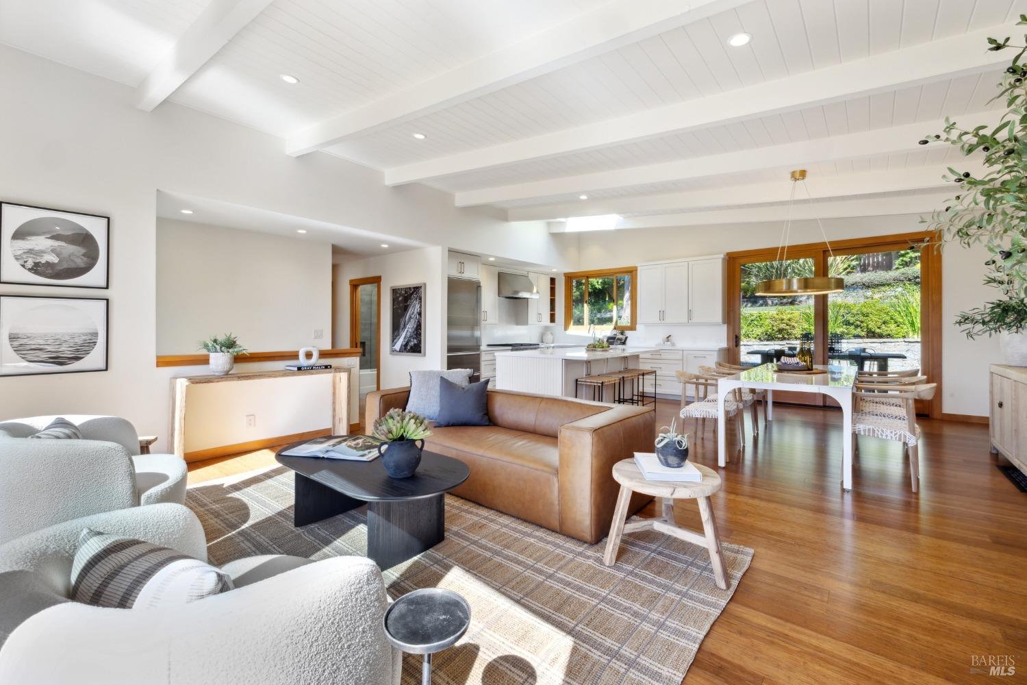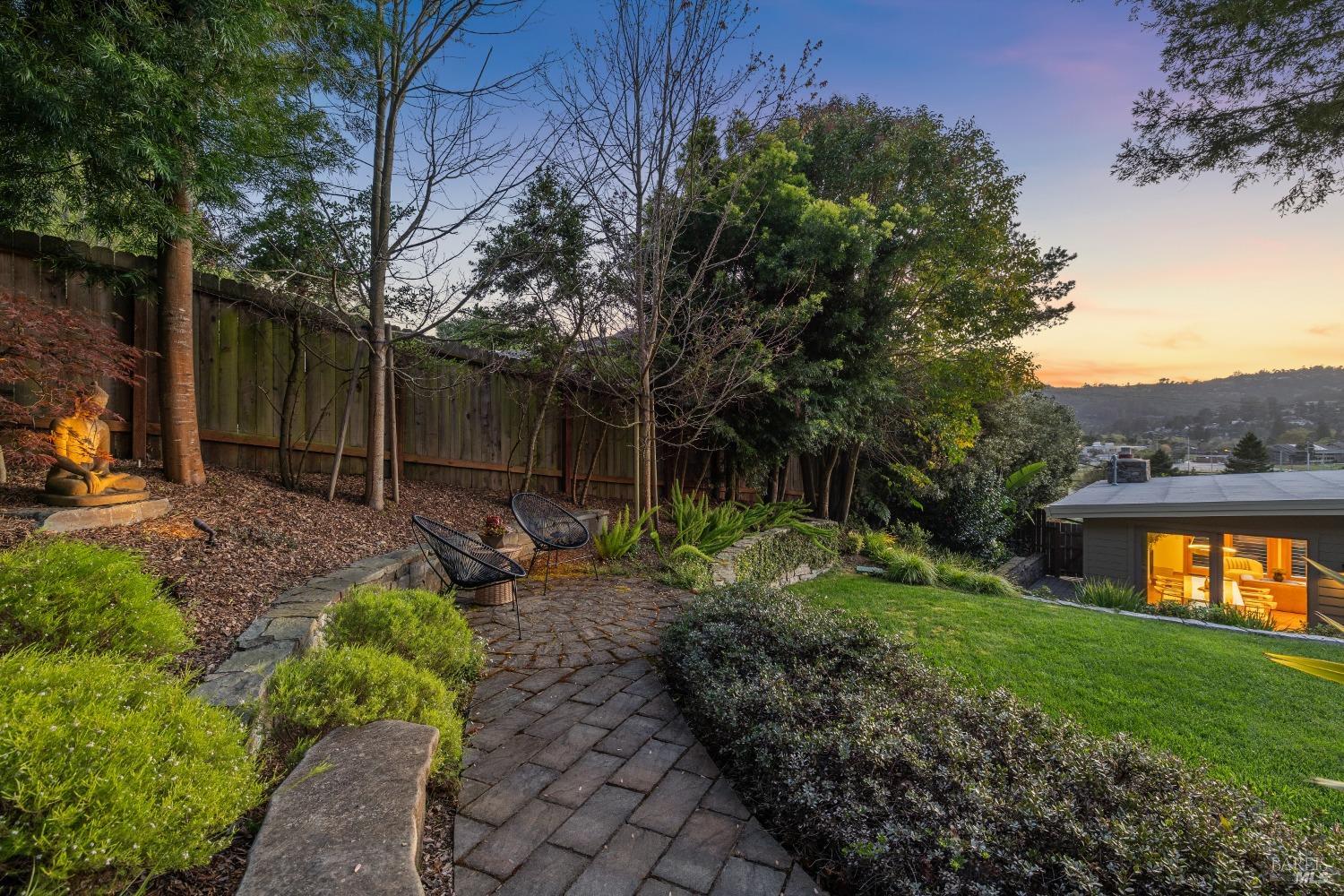 Exceptional Mid Century home in prime Mill Valley location with views of Hauke Park, Mt Tam and surrounding ridge lines. Completely updated including electrical, plumbing, windows, siding, kitchen, baths, and new roof. Wonderfully light and bright. Huge primary suite located on main level. Spectacular garden oasis grounds with peaceful large patios, terraces and level yard. Spacious ADU and garage were built in 2013. Numerous built ins throughout. The ultimate in convenience and lifestyle! Easy walk to parks, school, community center, and trails. Bring your toothbrush and move in.