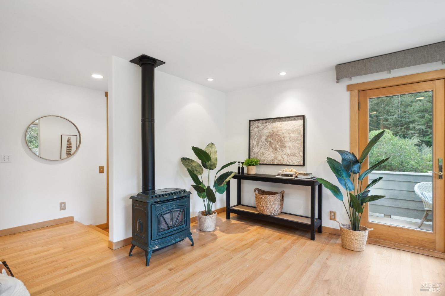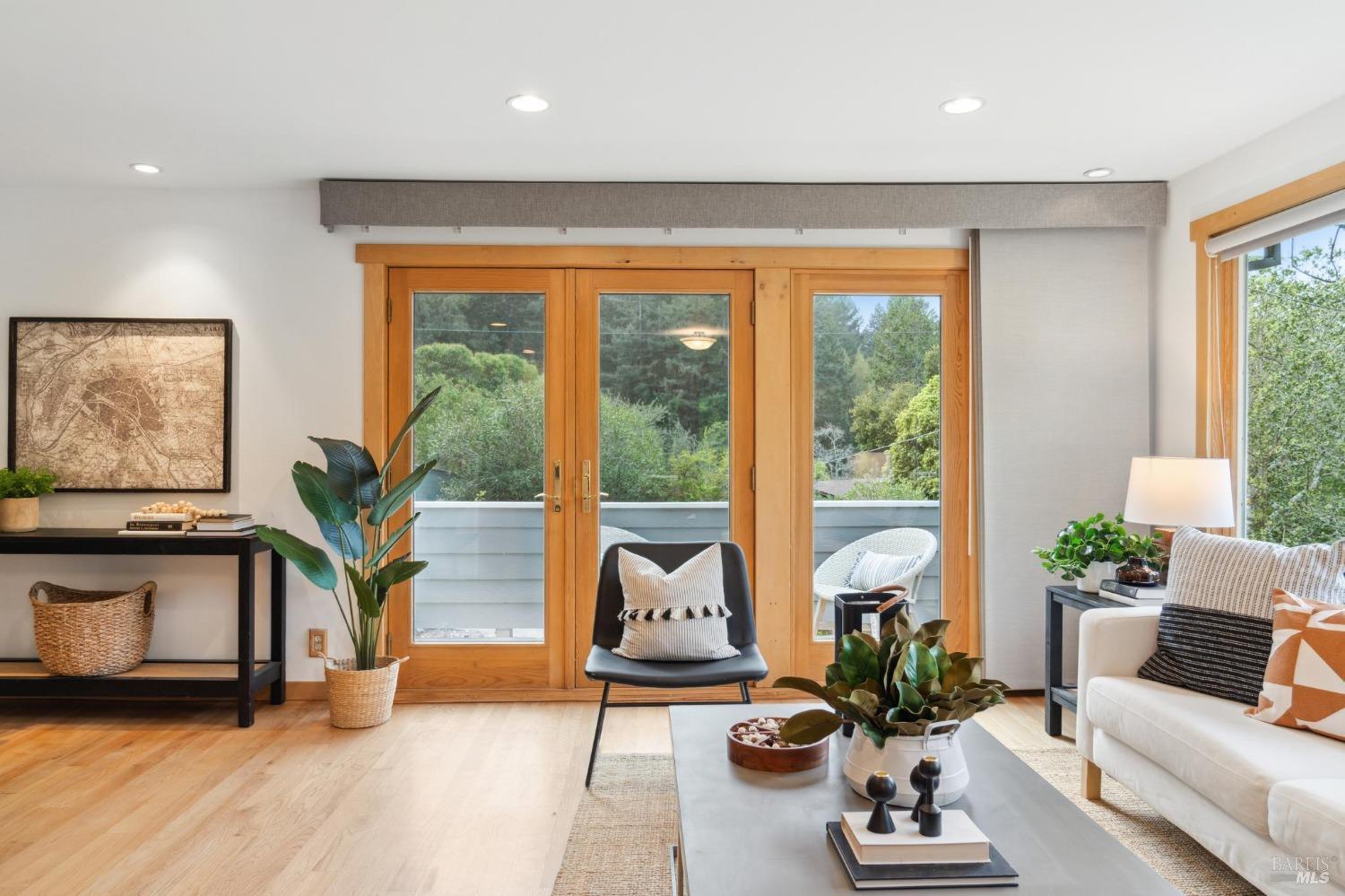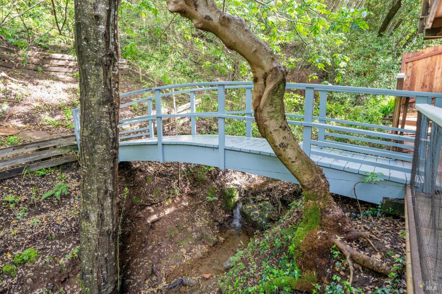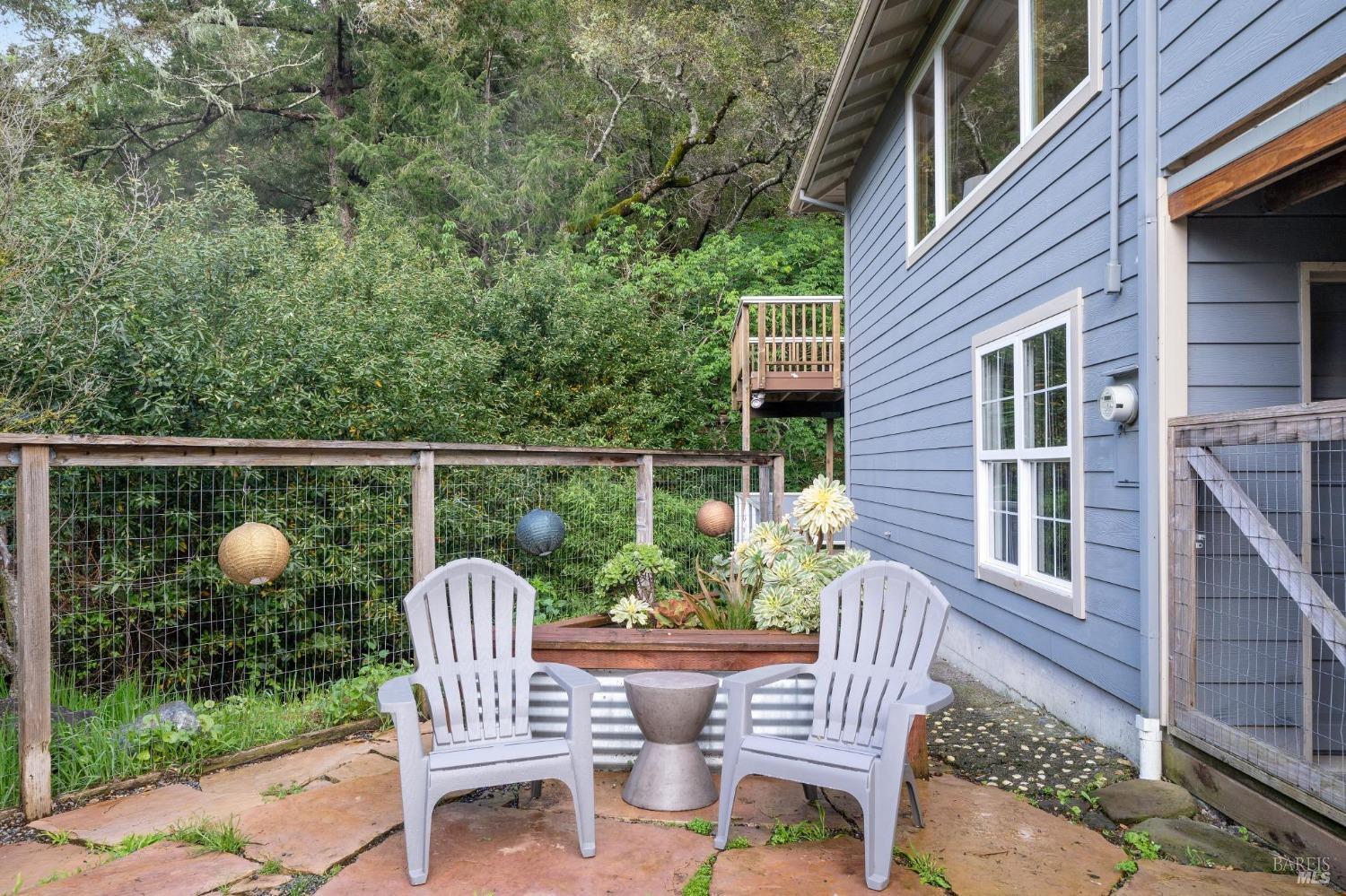 Welcome to 24 Buckeye Circle - a special and unique retreat. Enter through a fenced and private beautifully cared for garden and step inside this inviting home. Hardwood floors throughout and large double-paned windows allow the main living space to flood with light. Complimenting the NEST temperature control, a gas fireplace and solar window shades provide both comfort and energy efficiency year-round. The upgraded kitchen features cabinetry with ample storage space, newer appliances and stone counter tops. Facing the seasonal creek below, with a lovely Japanese garden bridge, the primary bedroom suite is light filled and includes a walk-in closet space and spa-shower bathroom. The additional bedrooms and bath can be closed off to create a suite. Second bath has been updated with a beautiful shower over claw-foot tub. A two car garage with partial basement and an additional storage room is located on the lower sloped level and provides plenty of room for outdoor/weekend gear. Numerous areas throughout yard to bbq, enjoy nature and just relax. Located three doors down from Open Space access to the ridgetop and beyond for any hiker/biker or just nature lover. 3 min. drive to Woodacre pool, 5 min. drive to SFDB. The Spirit Rock Meditation and retreat center just down the way!