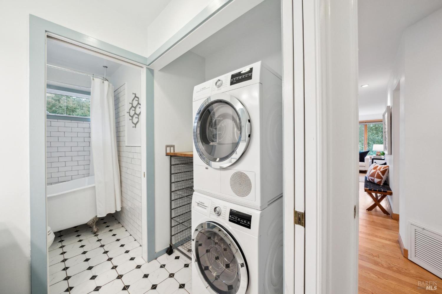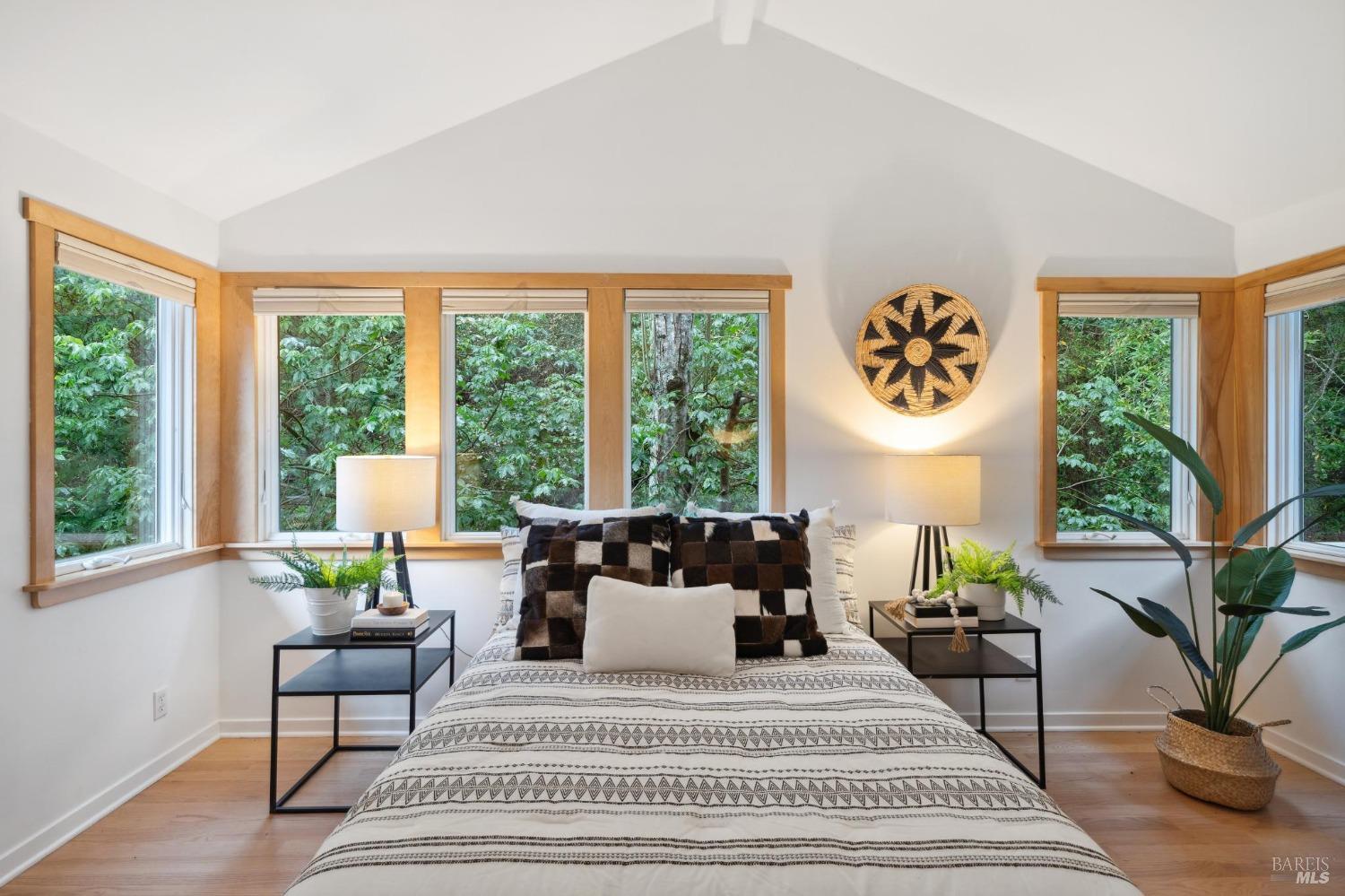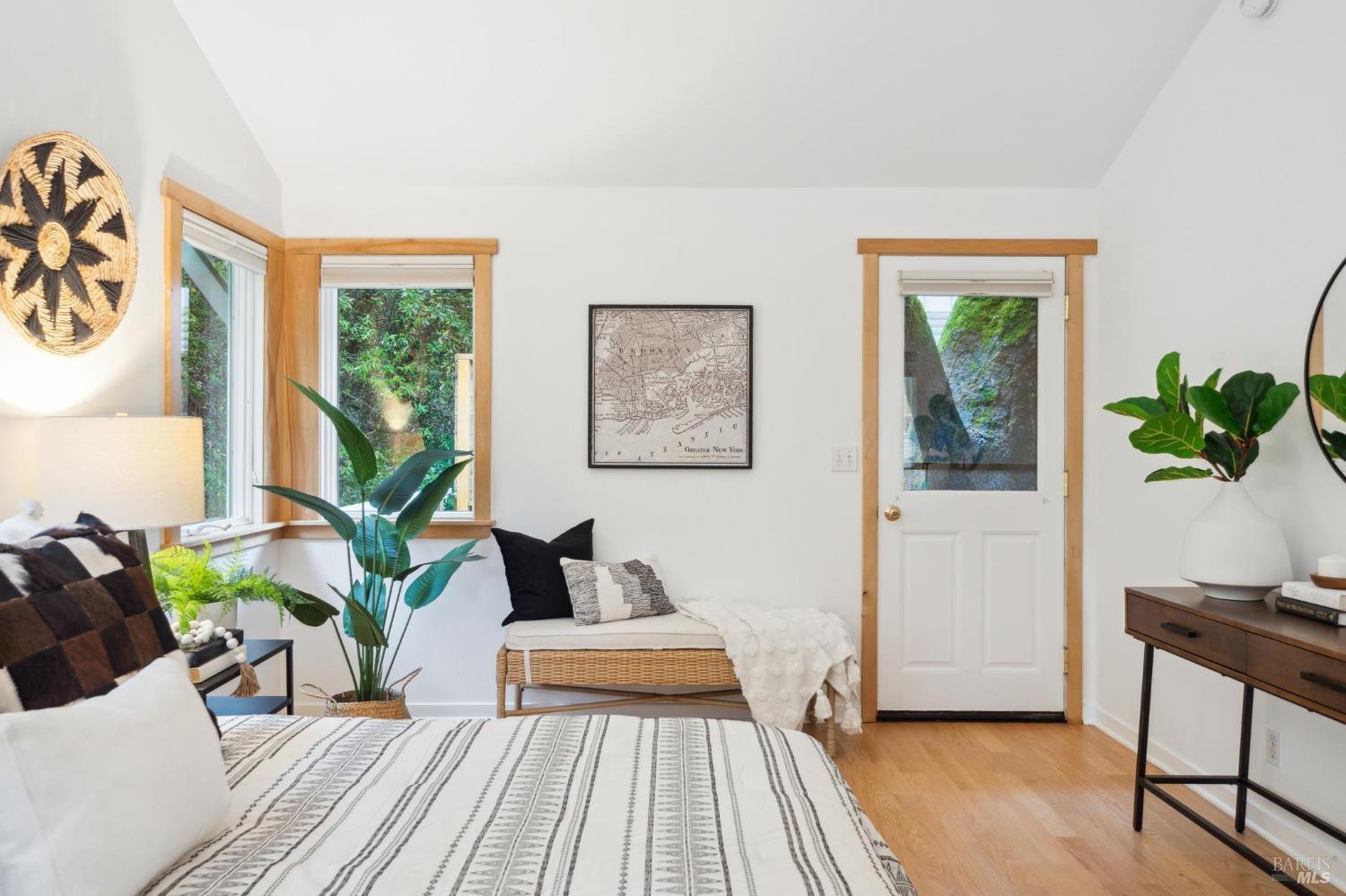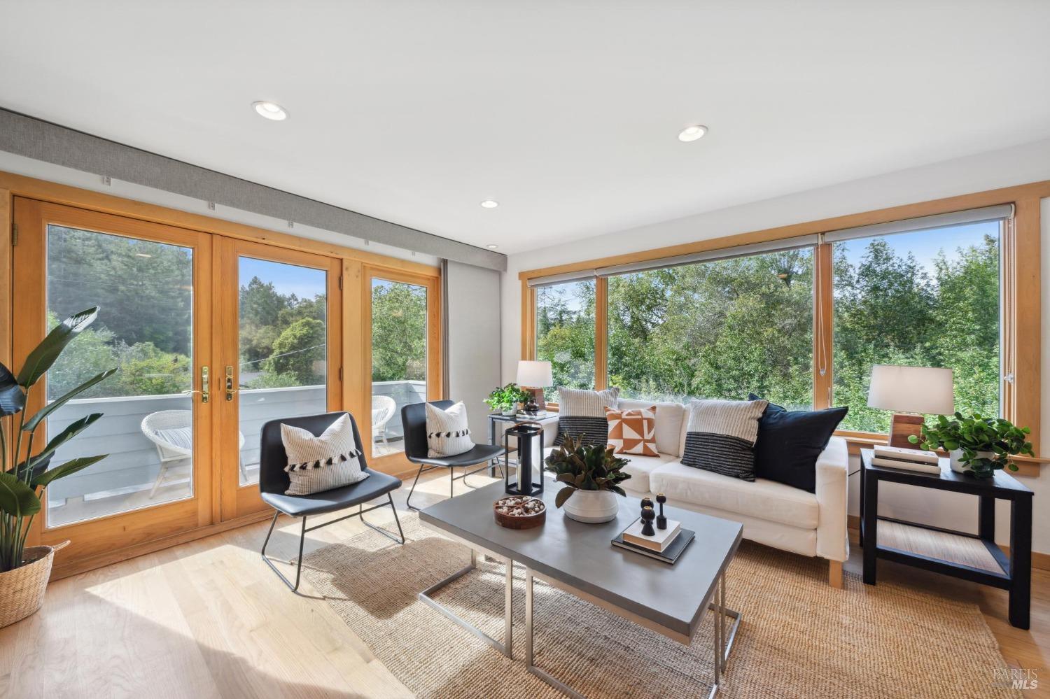 Welcome to 24 Buckeye Circle - a special and unique retreat. Enter through a fenced and private beautifully cared for garden and step inside this inviting home. Hardwood floors throughout and large double-paned windows allow the main living space to flood with light. Complimenting the NEST temperature control, a gas fireplace and solar window shades provide both comfort and energy efficiency year-round. The upgraded kitchen features cabinetry with ample storage space, newer appliances and stone counter tops. Facing the seasonal creek below, with a lovely Japanese garden bridge, the primary bedroom suite is light filled and includes a walk-in closet space and spa-shower bathroom. The additional bedrooms and bath can be closed off to create a suite. Second bath has been updated with a beautiful shower over claw-foot tub. A two car garage with partial basement and an additional storage room is located on the lower sloped level and provides plenty of room for outdoor/weekend gear. Numerous areas throughout yard to bbq, enjoy nature and just relax. Located three doors down from Open Space access to the ridgetop and beyond for any hiker/biker or just nature lover. 3 min. drive to Woodacre pool, 5 min. drive to SFDB. The Spirit Rock Meditation and retreat center just down the way!