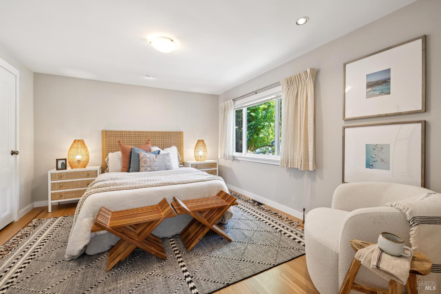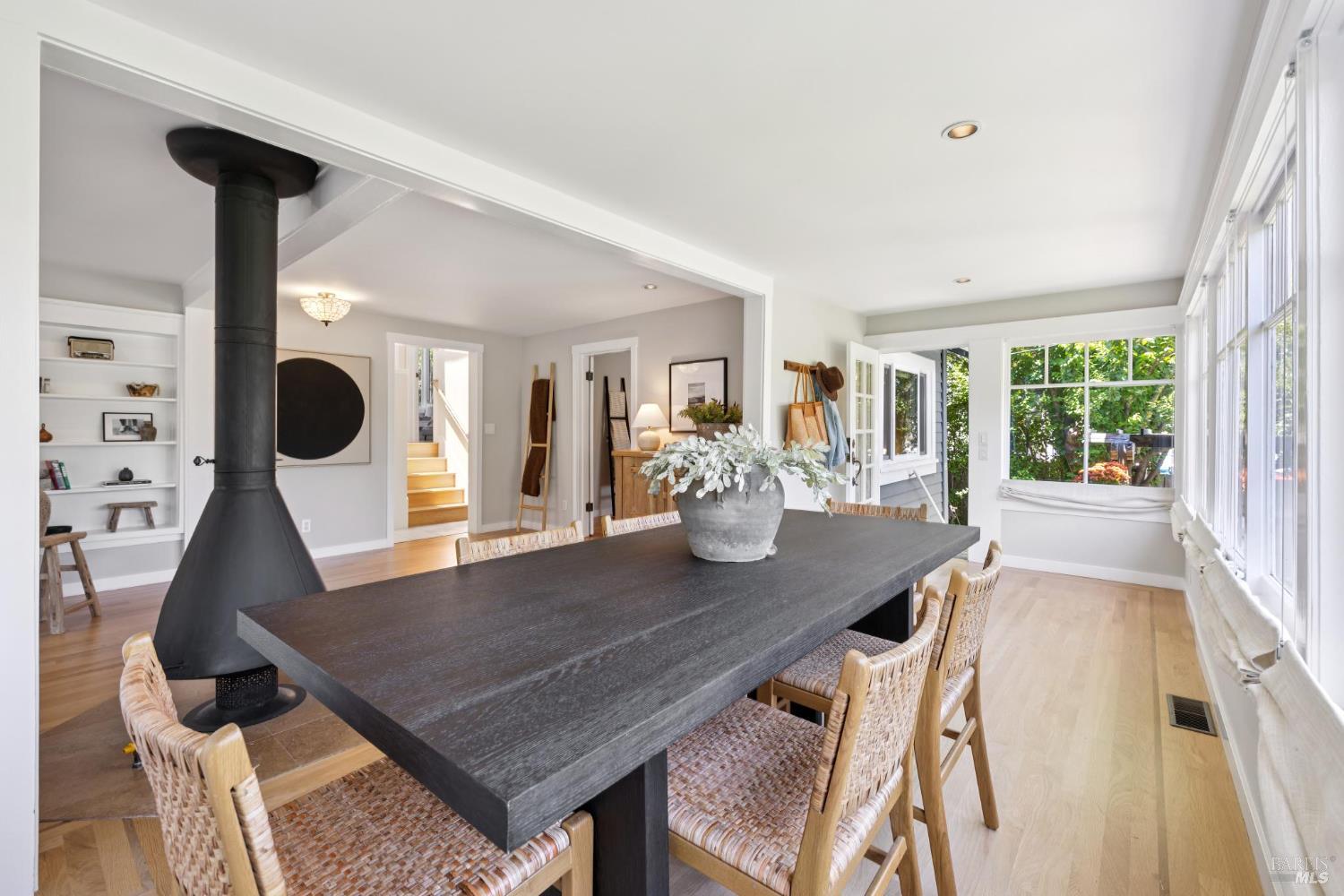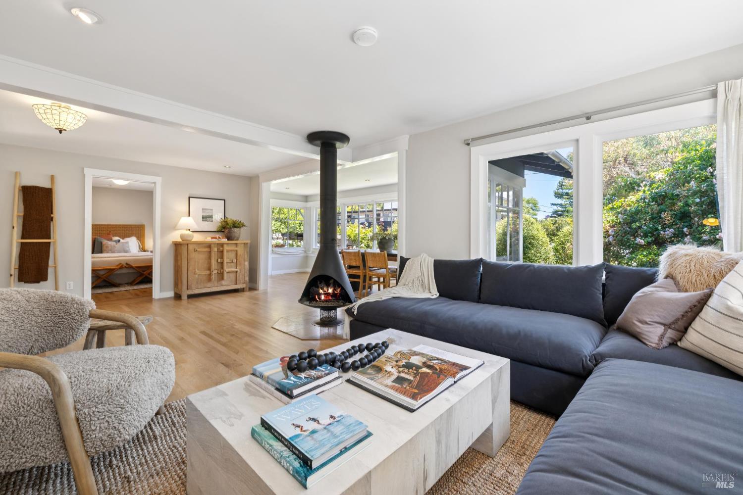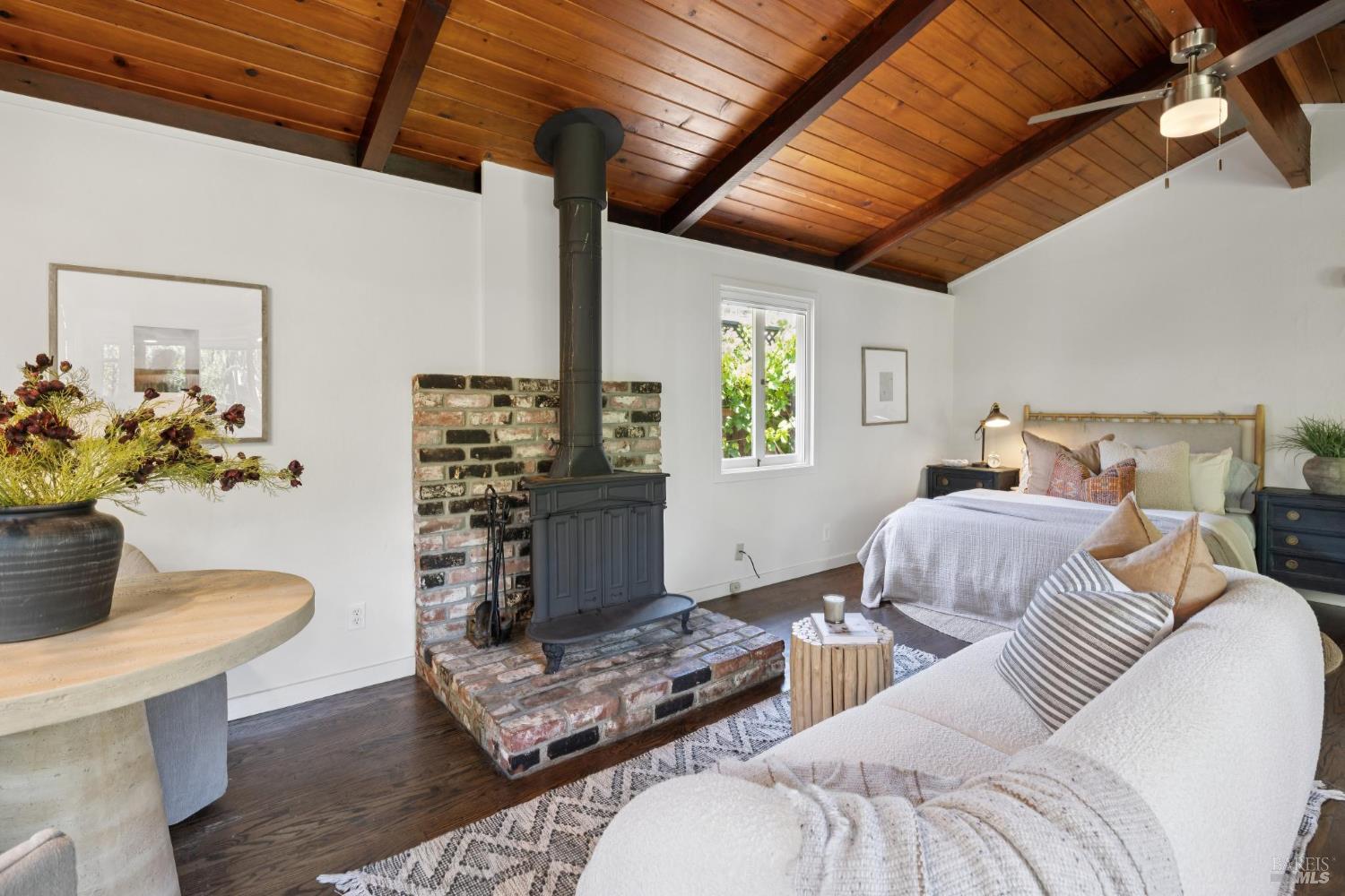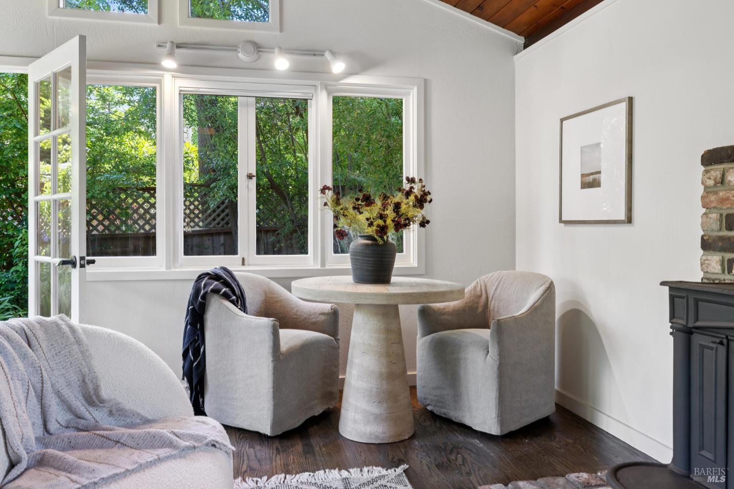 Set on a sunny, level lot, this charming property includes a 3-bedroom, 2-bath main home plus a studio cottage with a full kitchen and bath. Together, they offer a rare combination of character and flexibility. Built in 1917 and lovingly cared for and expanded, the property blends classic details with thoughtful upgrades, including solar, A/C, heat pump, induction ranges, electric ovens and more. Inside the main house, hardwood floors, built-ins and a fireplace create an inviting atmosphere. The ensuite primary bedroom features vaulted ceilings and peaceful garden views. The eat-in kitchen opens directly to a sunny deck and a private, enclosed gardenperfect for al fresco dining or enjoying a quiet moment outdoors. The garden is a standout featurealive with blooming flowers, mature fruit trees, and tucked-away spots that invite reflection and play. A spacious shed provides room for potting, projects, or storage. The cottage adds flexibility with its own kitchen, full bath, wood-burning stove, electric heat, A/C, and hardwood floors. Just blocks from the eclectic energy of Tam Junction, you're moments from Good Earth Natural Foods, cafes, and shops. Enjoy access to renowned hiking and biking trails, highly regarded Mill Valley Schools and a scenic commute to San Francisco.