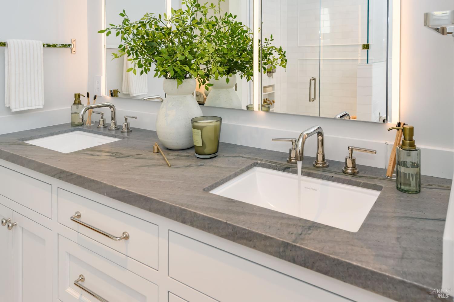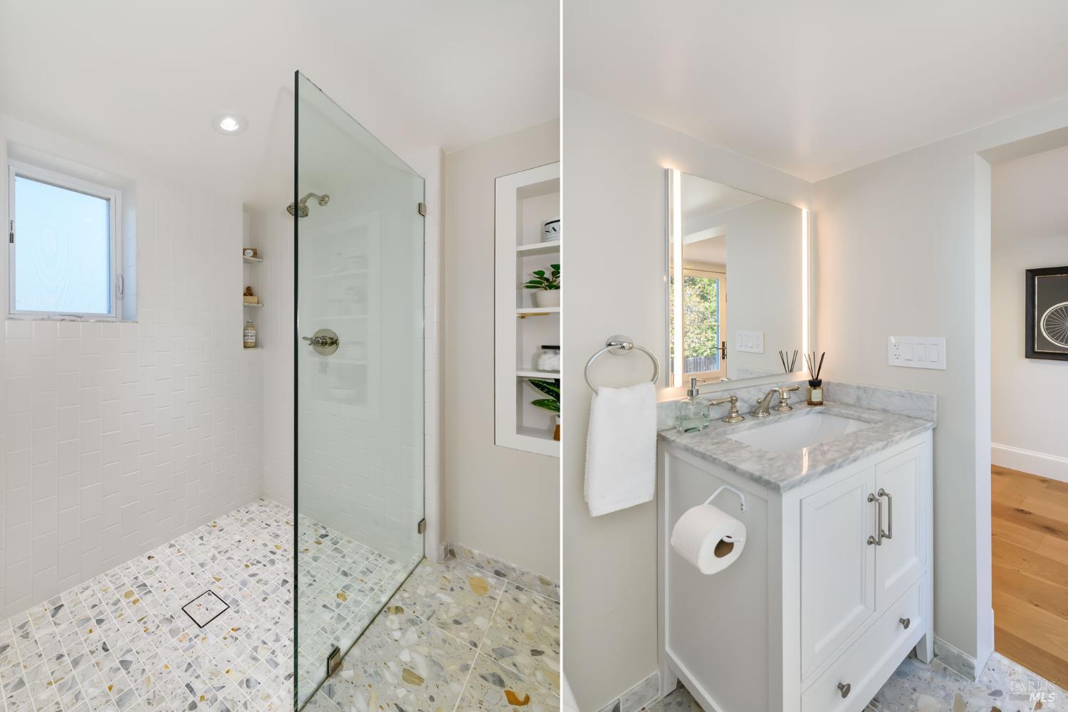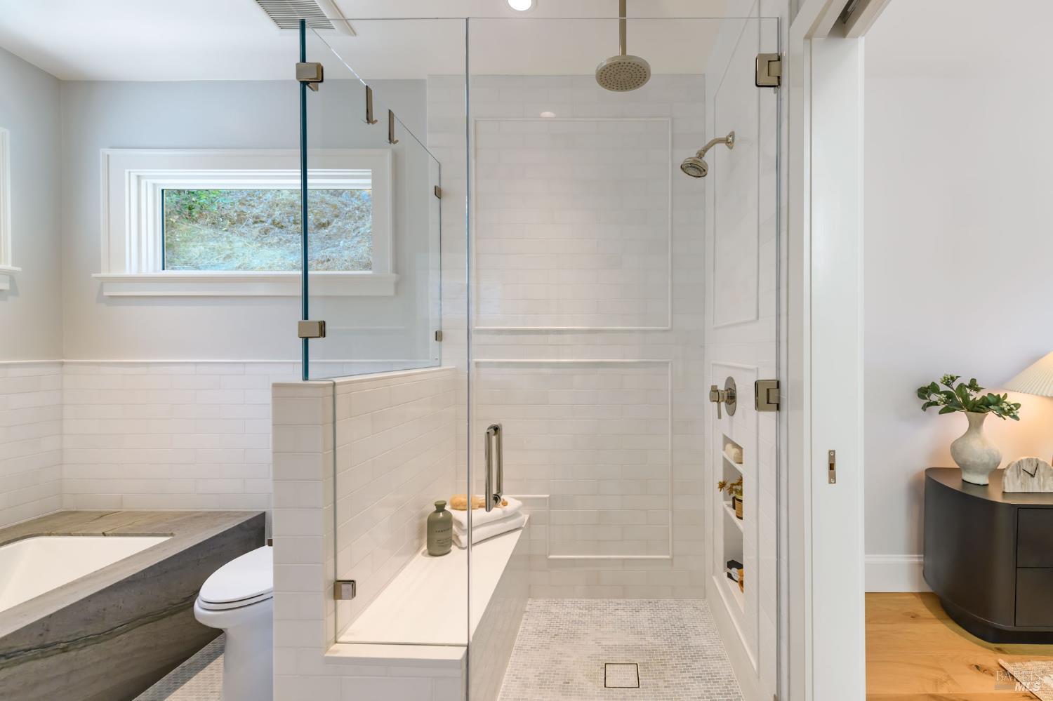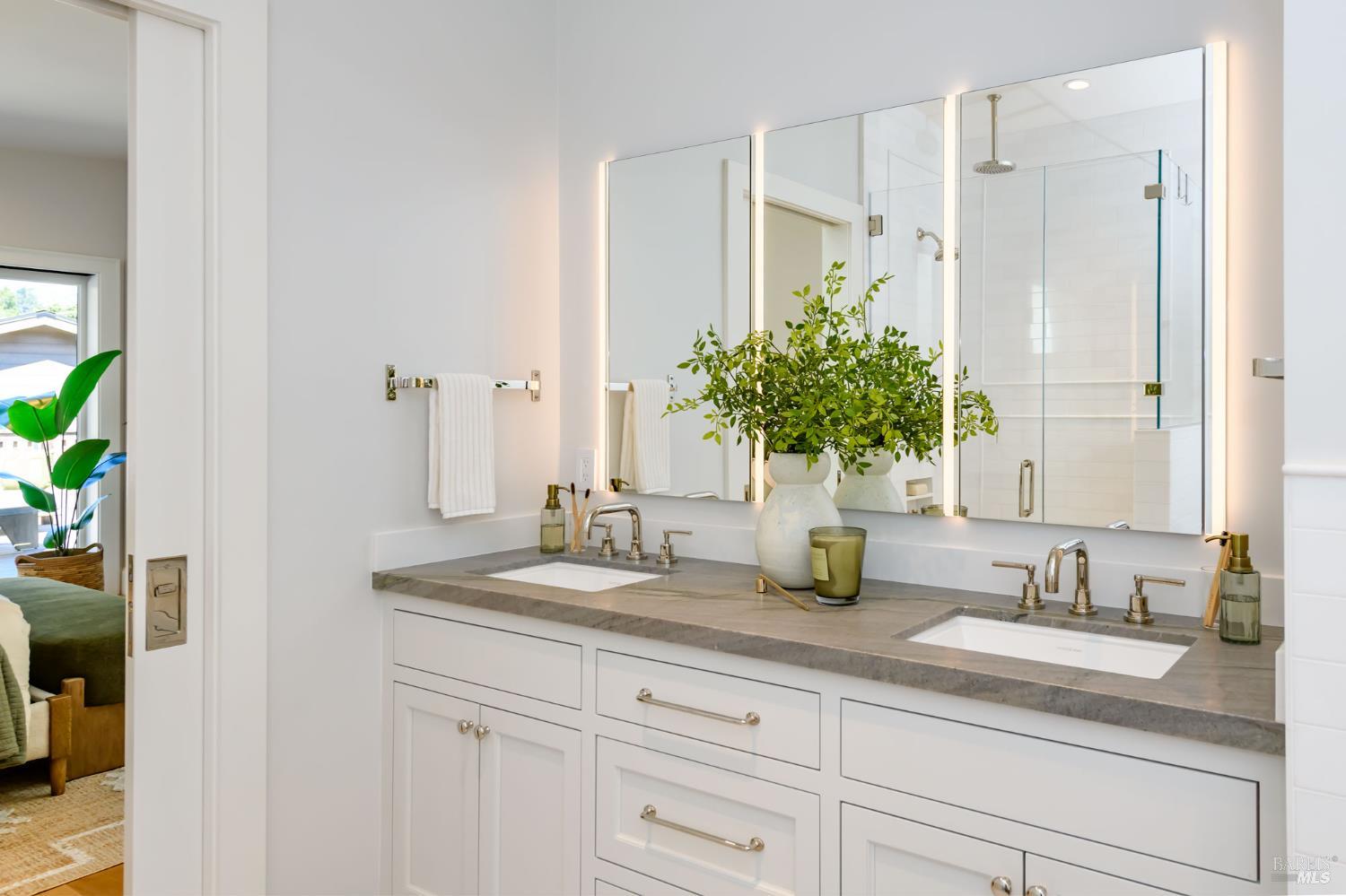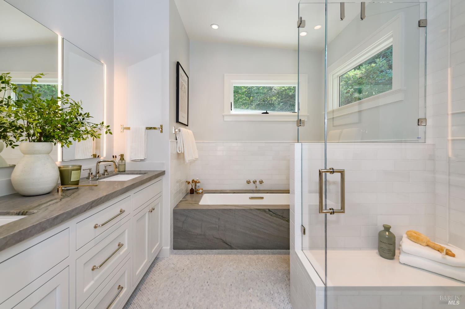 Majorly renovated in 2022-23 this Tam Valley home was taken to the next level of modern luxury. Thoughtful design, custom features and quality materials, such as Ann Sacks tiles, are evident throughout. Upon entry you'll take in the 14' vaulted ceilings and experience a light, bright and inviting home. Notable features include custom Loewen windows, 7 skylights, an abundance of custom cabinetry, bluestone rear patio, white oak floors, radiant heat flooring in bathrooms and much more. All three amply-sized bedrooms are located on the main level. The primary suite offers access to the expansive bamboo-planked deck.The bright, airy kitchen features a Wolf M Series Double Oven, Thermador Induction Smart Cooktop, and 48 Sub-Zero Refrigerator. The breakfast nook leads to the family room, which then flows to the covered porch and open deck.The lower level Retreat, with adjacent full bath, features a separate entrance. The home possesses fire resistant features not often found in a single family home. And the sense of community is real. From the award-winning Tam Valley Elementary School, Kay Park,Tam Valley Community Center and nearby Hook Fish, Equator Coffee, Buckeye Roadhouse, Good Earth Natural Foods. And just enjoy the peace and tranquility of this stunning home.