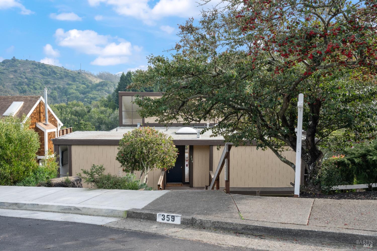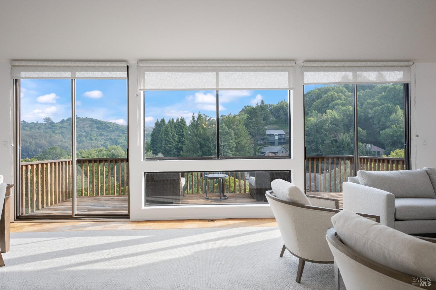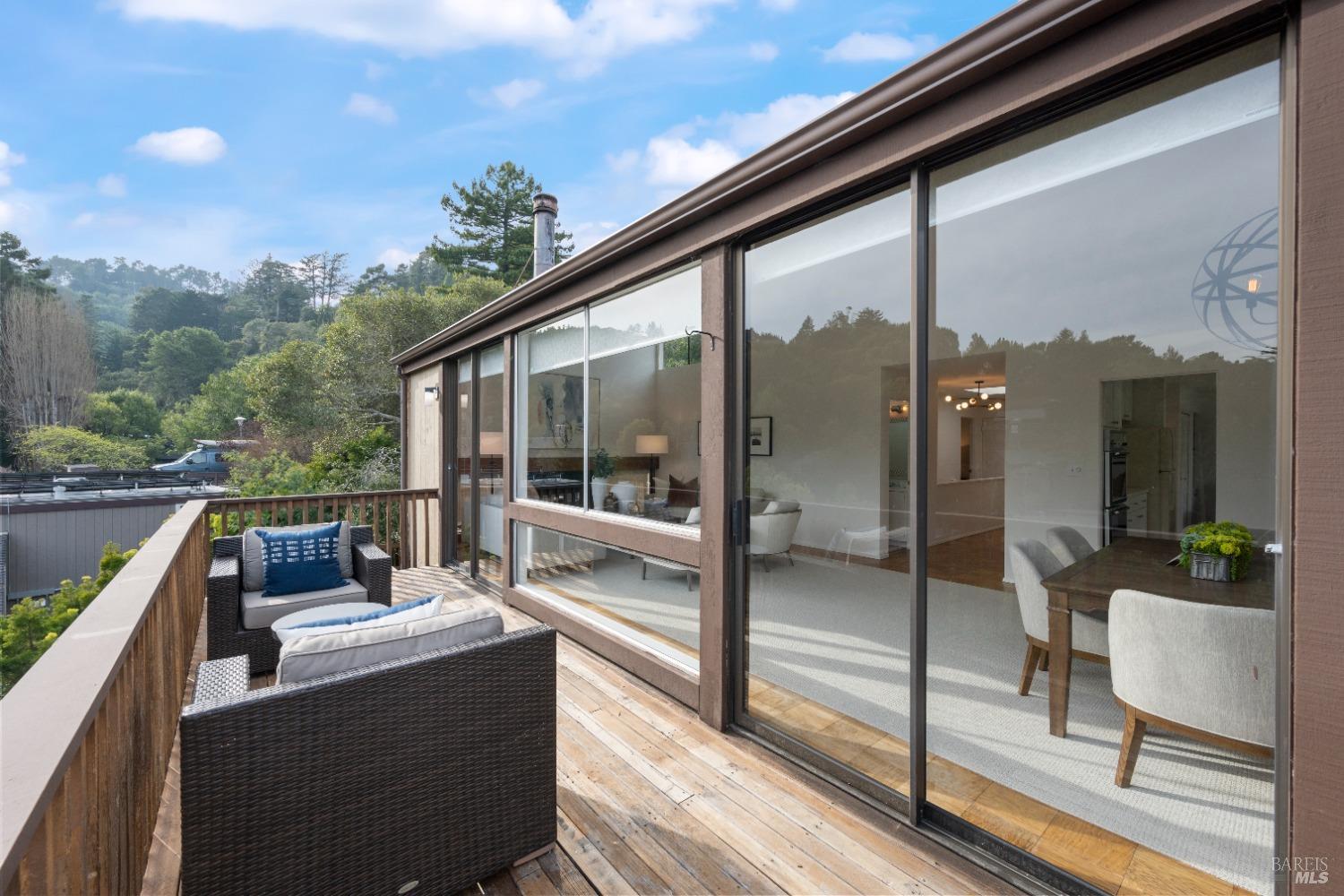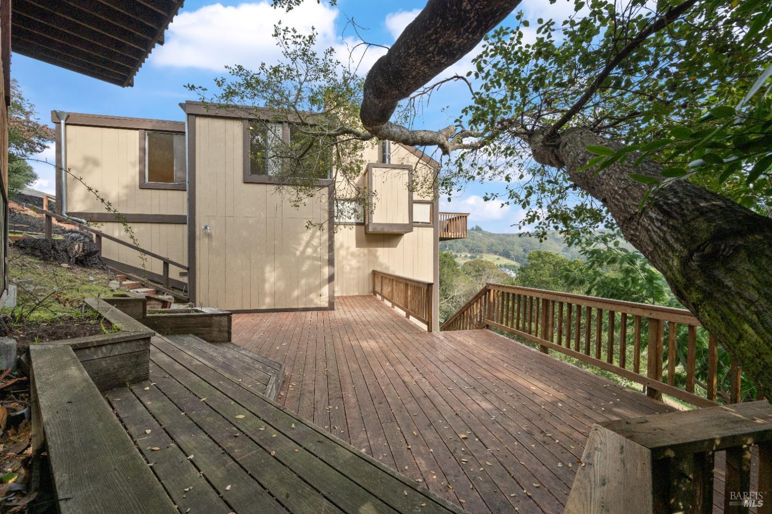 Move right in to this appealing 2 story home, well situated on a corner lot with low maintenance landscaping, pleasant valley views and a 2-car detached parking deck. There are 5 bedrooms and 2.5 baths in this contemporary residence. The primary suite with sitting area, bath with double sinks, and a walk-in closet are located on the main level. The kitchen/family room leads to an adjoining sun deck, perfect for morning coffee or an afternoon BBQ. There are vaulted ceilings in the spacious living/dining area with outdoor access to an expansive sun deck, capturing hillside open space and valley views. The lower level consists of 4 bedrooms, a full bath and a laundry room. One of the bedrooms has outdoor access to a private deck. Near 101 and on the Southern tip of Marin County, Marin View was designed to harmoniously blend with nature, dramatically perched above the popular Tennessee Valley Road, gateway to the major hiking trail and National Park, Tennessee Valley Trail and Beach. An offshoot of the Marin Headlands and incredibly close to San Francisco, Tennessee Valley, offers a pristine wildlife zone with a small beach where, along the path, hikers see treasured animals and bird species, including bobcats, deer, foxes, coyotes and luscious springtime displays of native plant