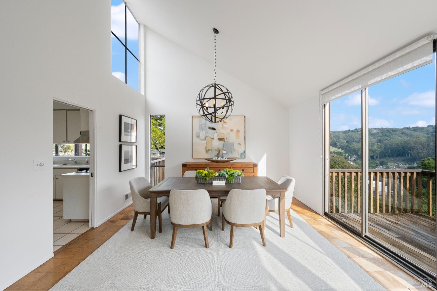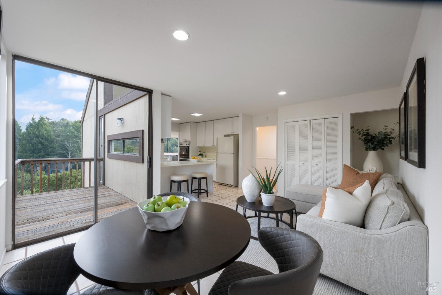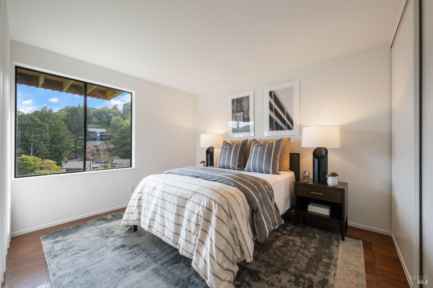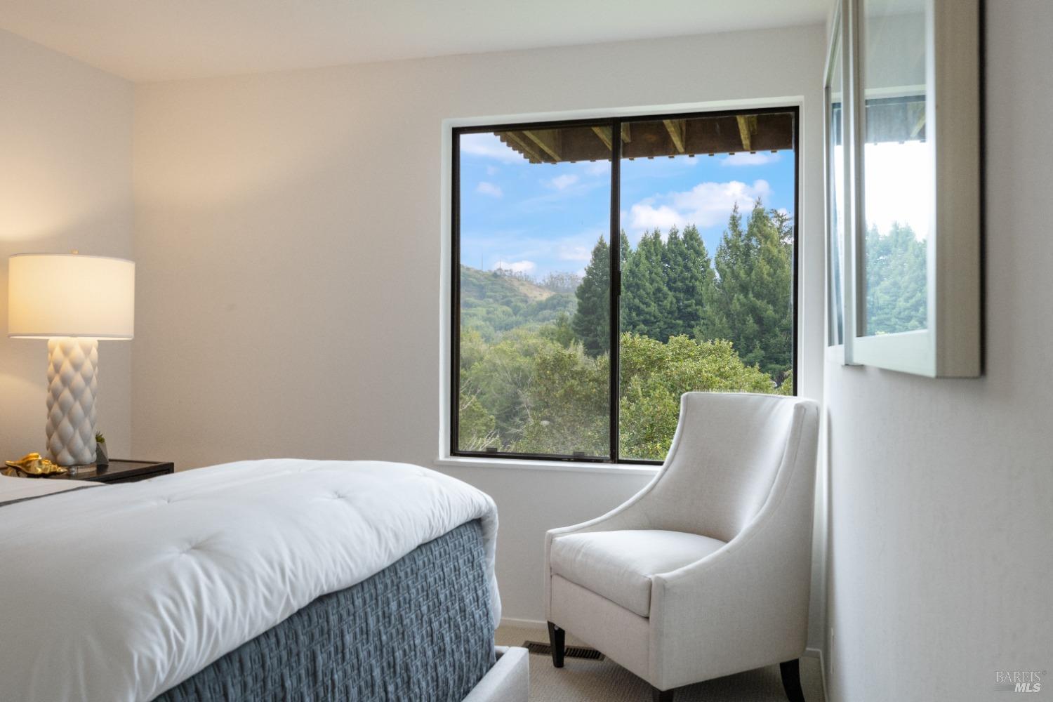 Move right in to this appealing 2 story home, well situated on a corner lot with low maintenance landscaping, pleasant valley views and a 2-car detached parking deck. There are 5 bedrooms and 2.5 baths in this contemporary residence. The primary suite with sitting area, bath with double sinks, and a walk-in closet are located on the main level. The kitchen/family room leads to an adjoining sun deck, perfect for morning coffee or an afternoon BBQ. There are vaulted ceilings in the spacious living/dining area with outdoor access to an expansive sun deck, capturing hillside open space and valley views. The lower level consists of 4 bedrooms, a full bath and a laundry room. One of the bedrooms has outdoor access to a private deck. Near 101 and on the Southern tip of Marin County, Marin View was designed to harmoniously blend with nature, dramatically perched above the popular Tennessee Valley Road, gateway to the major hiking trail and National Park, Tennessee Valley Trail and Beach. An offshoot of the Marin Headlands and incredibly close to San Francisco, Tennessee Valley, offers a pristine wildlife zone with a small beach where, along the path, hikers see treasured animals and bird species, including bobcats, deer, foxes, coyotes and luscious springtime displays of native plant