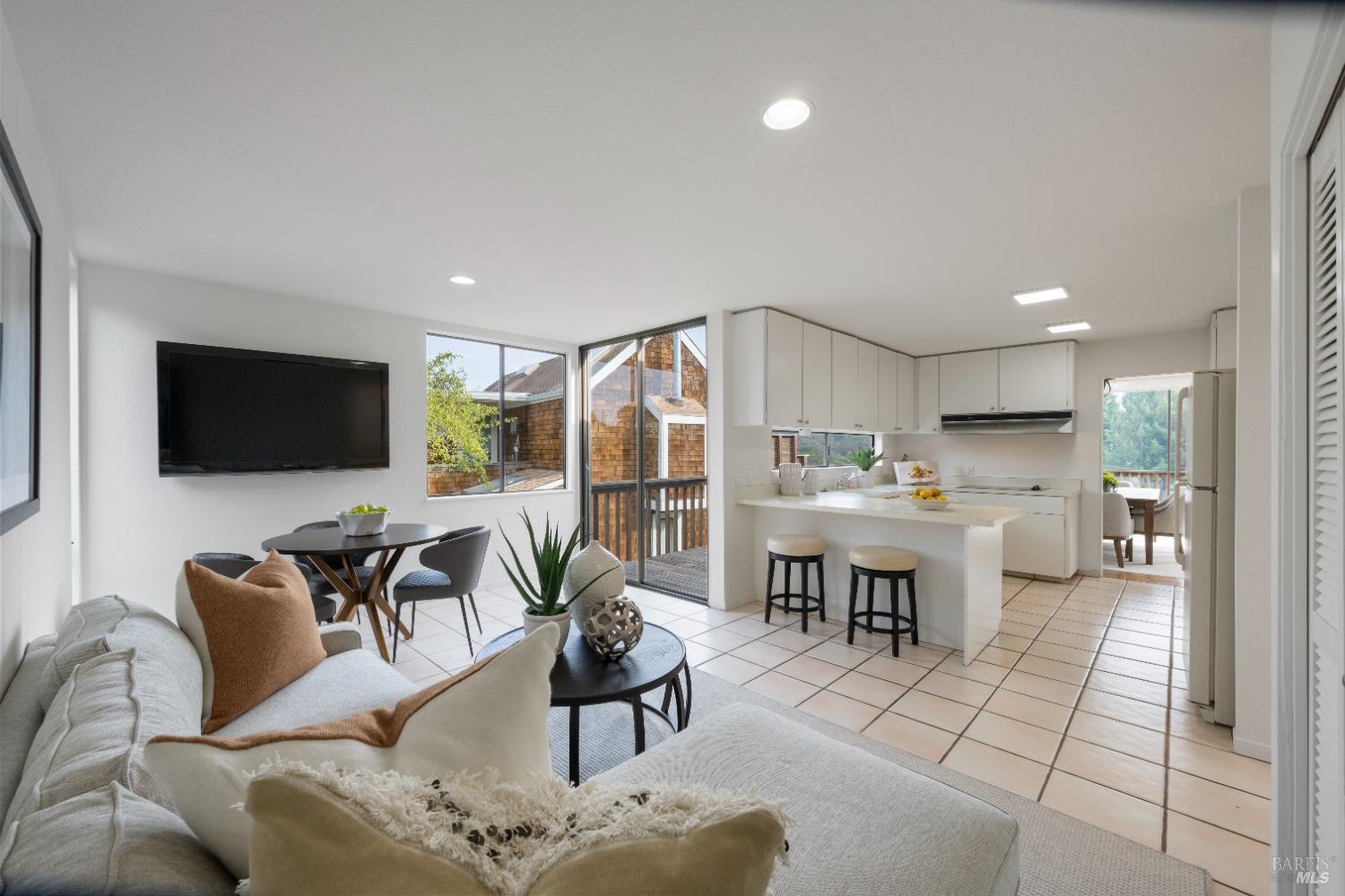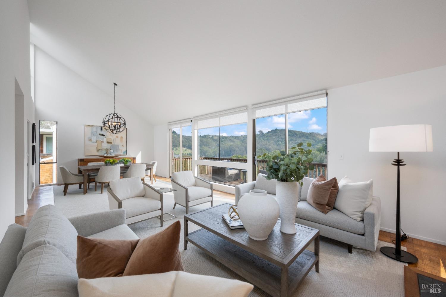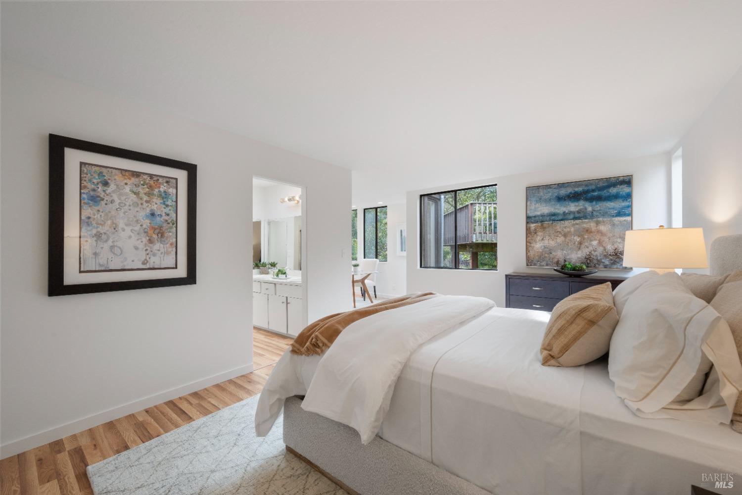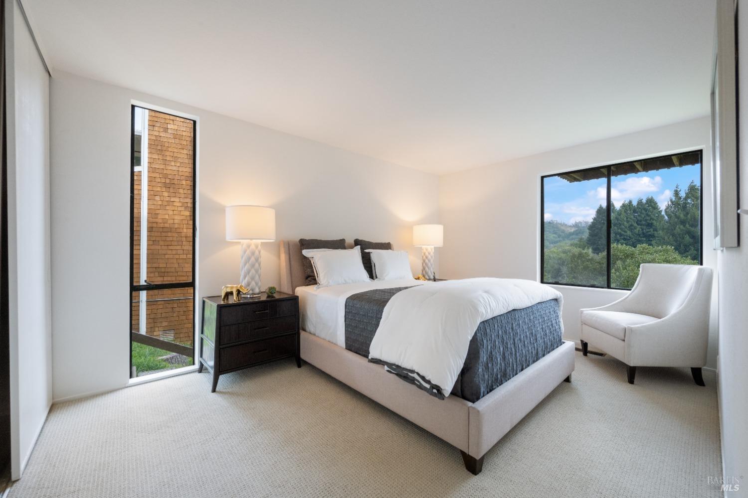 Move right in to this appealing 2 story home, well situated on a corner lot with low maintenance landscaping, pleasant valley views and a 2-car detached parking deck. There are 5 bedrooms and 2.5 baths in this contemporary residence. The primary suite with sitting area, bath with double sinks, and a walk-in closet are located on the main level. The kitchen/family room leads to an adjoining sun deck, perfect for morning coffee or an afternoon BBQ. There are vaulted ceilings in the spacious living/dining area with outdoor access to an expansive sun deck, capturing hillside open space and valley views. The lower level consists of 4 bedrooms, a full bath and a laundry room. One of the bedrooms has outdoor access to a private deck. Near 101 and on the Southern tip of Marin County, Marin View was designed to harmoniously blend with nature, dramatically perched above the popular Tennessee Valley Road, gateway to the major hiking trail and National Park, Tennessee Valley Trail and Beach. An offshoot of the Marin Headlands and incredibly close to San Francisco, Tennessee Valley, offers a pristine wildlife zone with a small beach where, along the path, hikers see treasured animals and bird species, including bobcats, deer, foxes, coyotes and luscious springtime displays of native plant