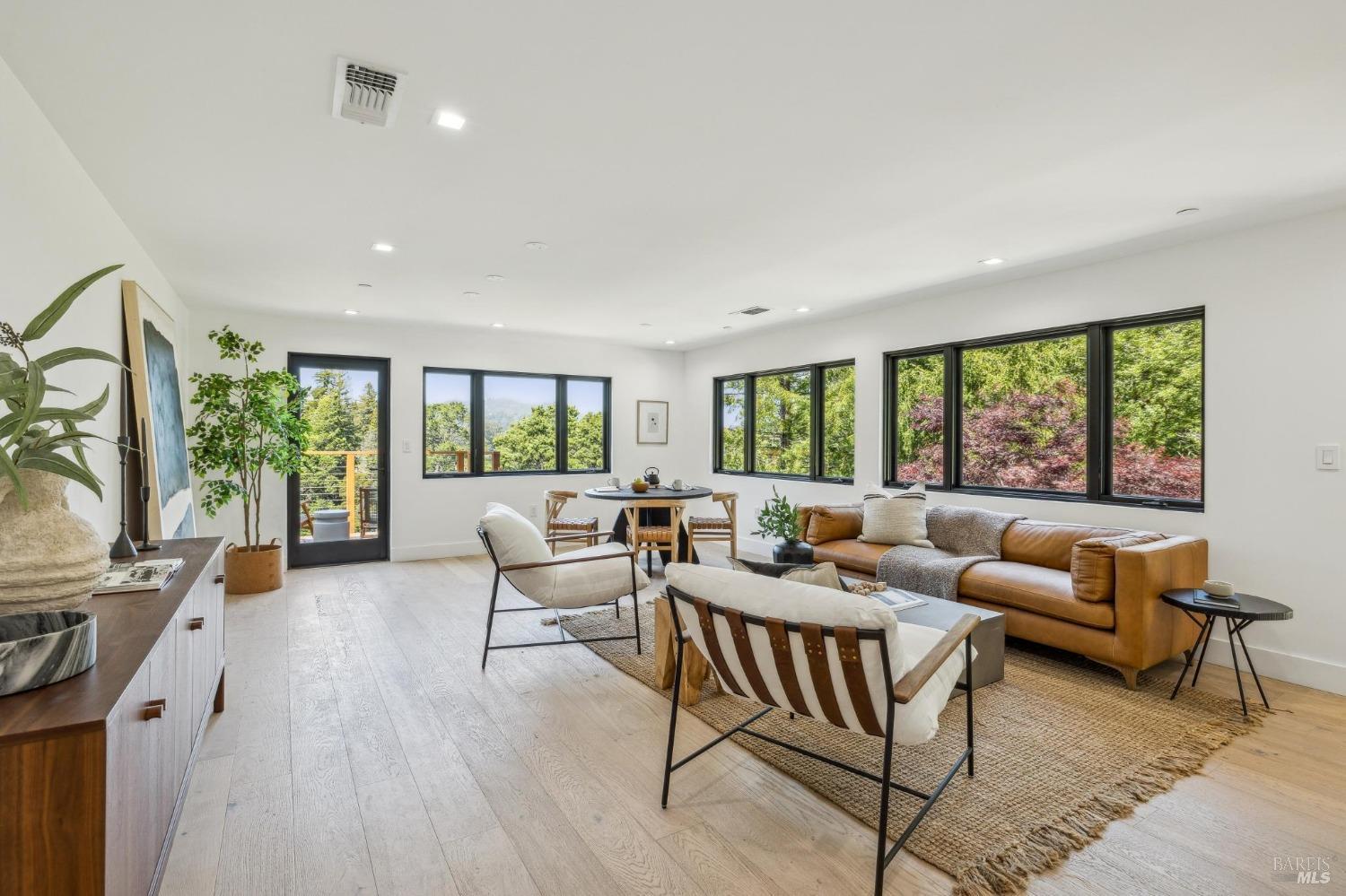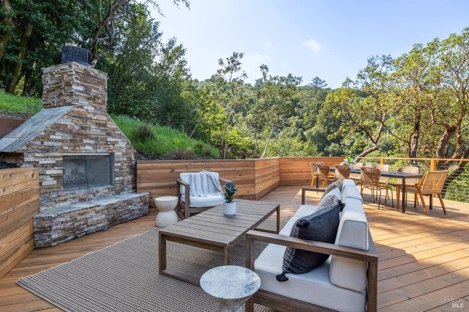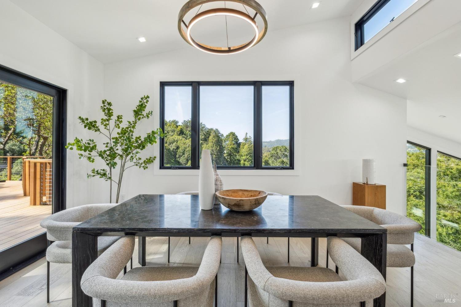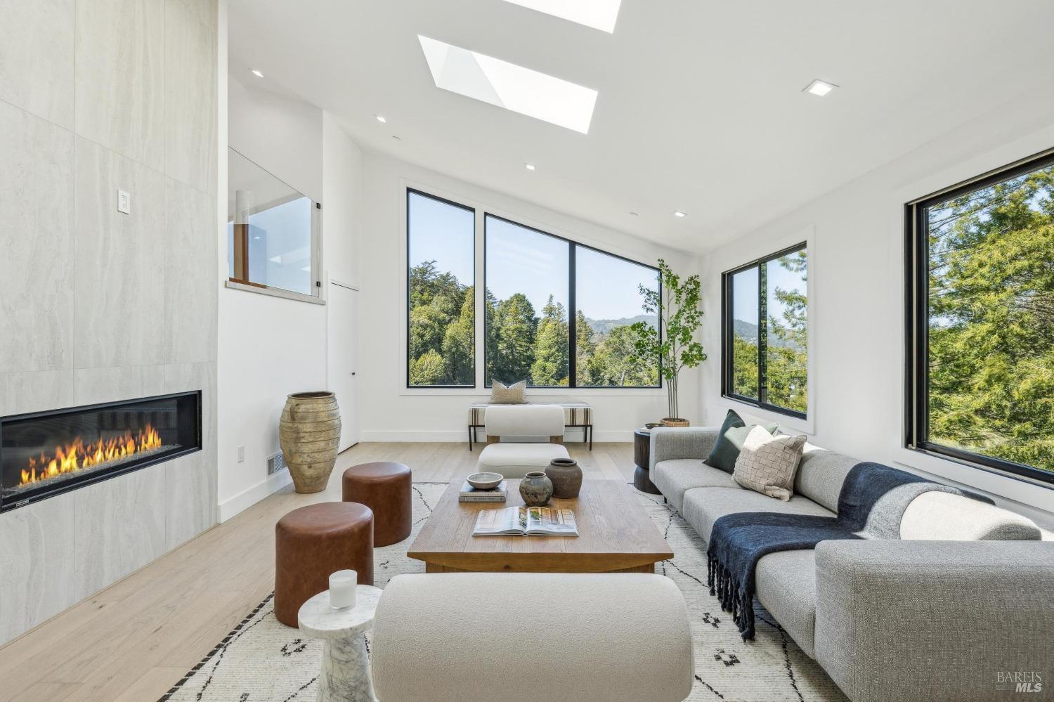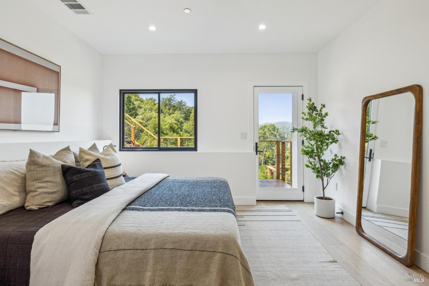 Perched on nearly 1.5 acres of private hillside in desirable Homestead Valley, this fully rebuilt contemporary residence offers an extraordinary combination of scale, style, and serenity. The home spans approximately 4,450 square feet of refined living space, offering 5 bedrooms, 4 full bathrooms, and a flexible layout designed for modern living. This light filled home unfolds across multiple levels with soaring ceilings, expansive decks, and sweeping views. The clean modern architecture harmonizes beautifully with its natural surroundings while showcasing the property's exceptional privacy. With beautifully reimagined interiors and sleek finishes, this is a property that lives as impressively as it shows. Included is a sizable luxurious primary suite, wide open outdoor entertaining space, two separate laundry areas, generous storage, and parking for 6 vehicles. This home offers a thoughtfully designed in-law space ideal for extended family, or guests, and ensures both convenience and privacy throughout. With Easy access to Highway 101, come experience this move-in-ready home that's just a stone's throw from Mill Valley's award-winning schools, vibrant shops, restaurants, and hiking trails.