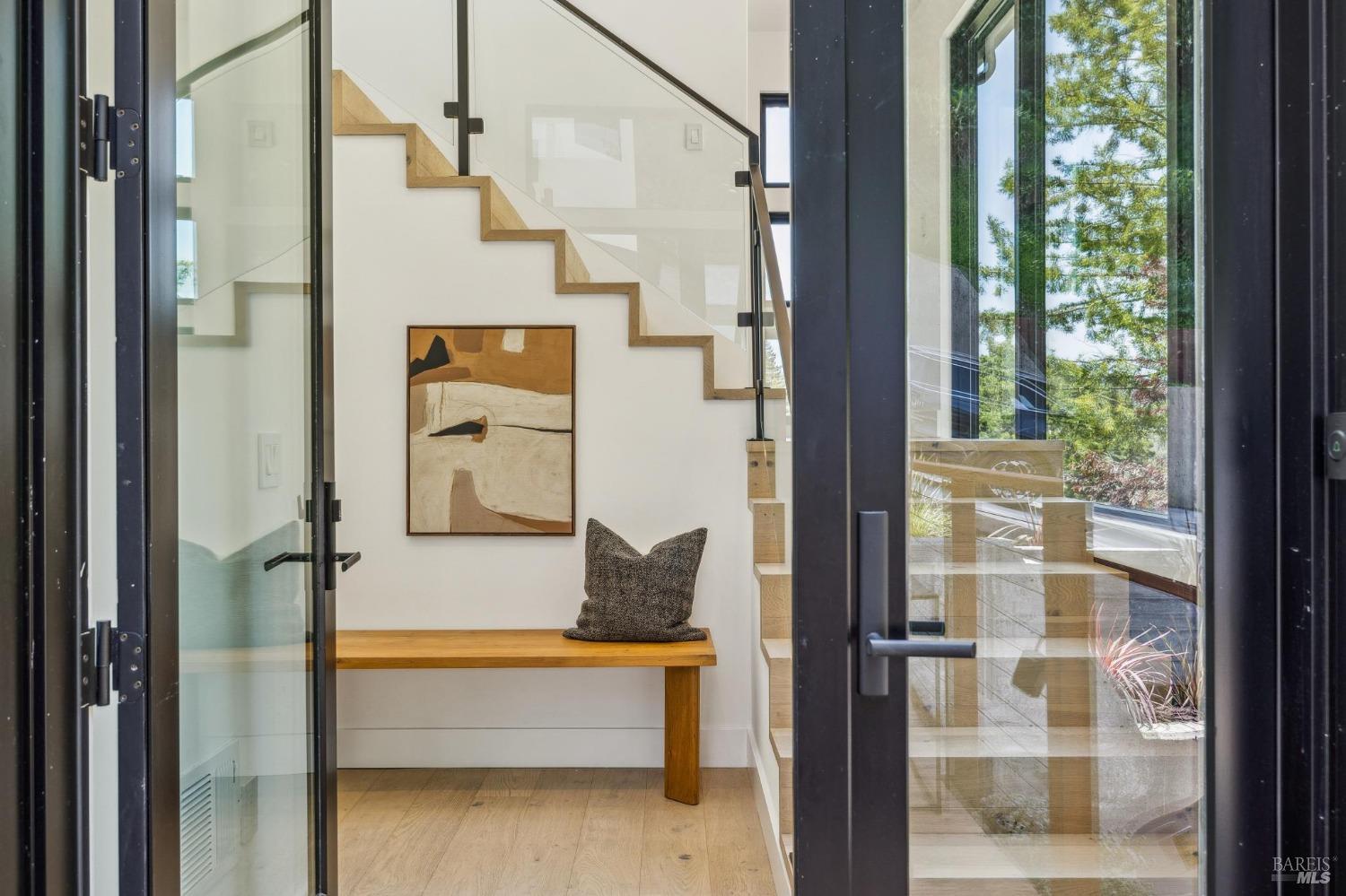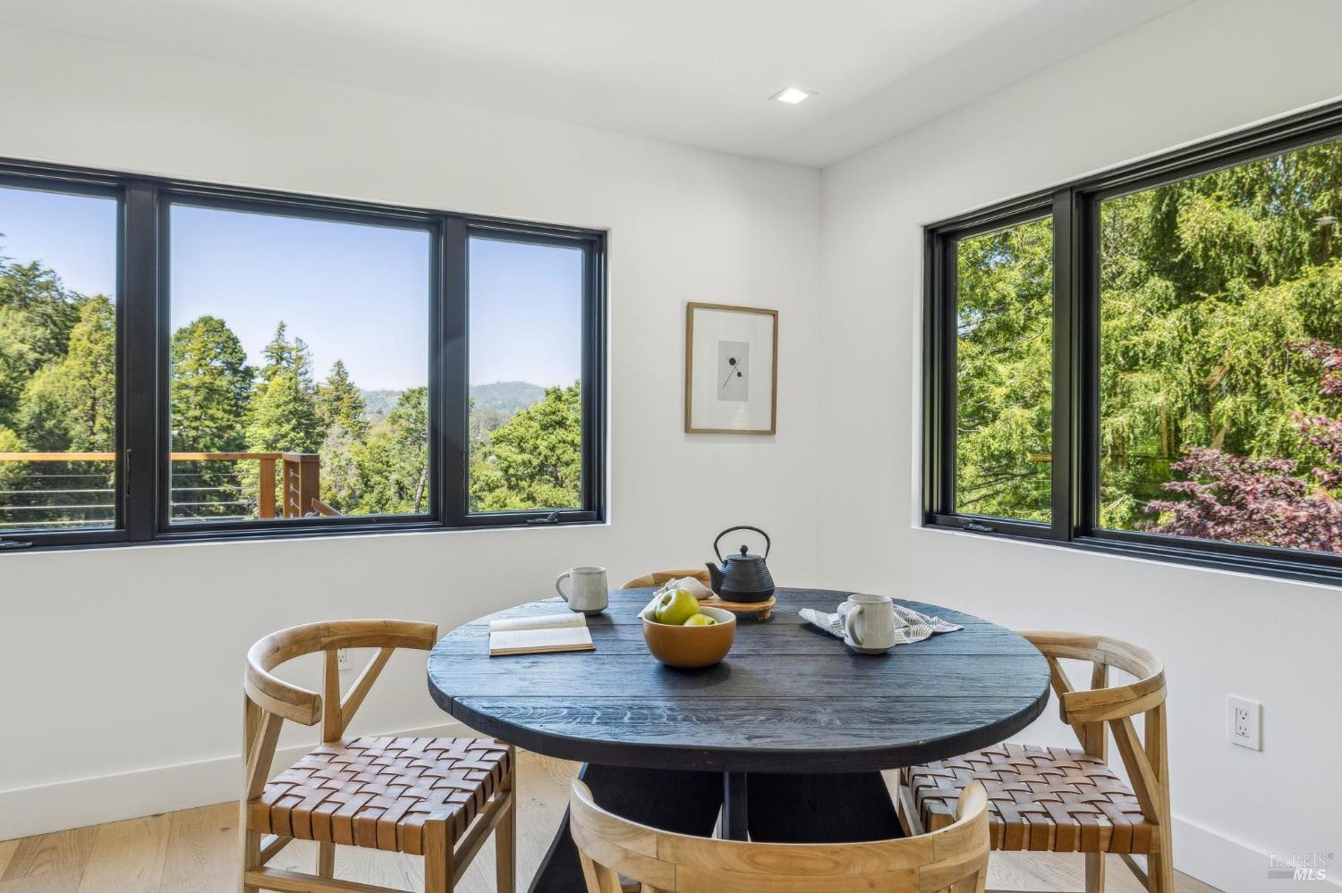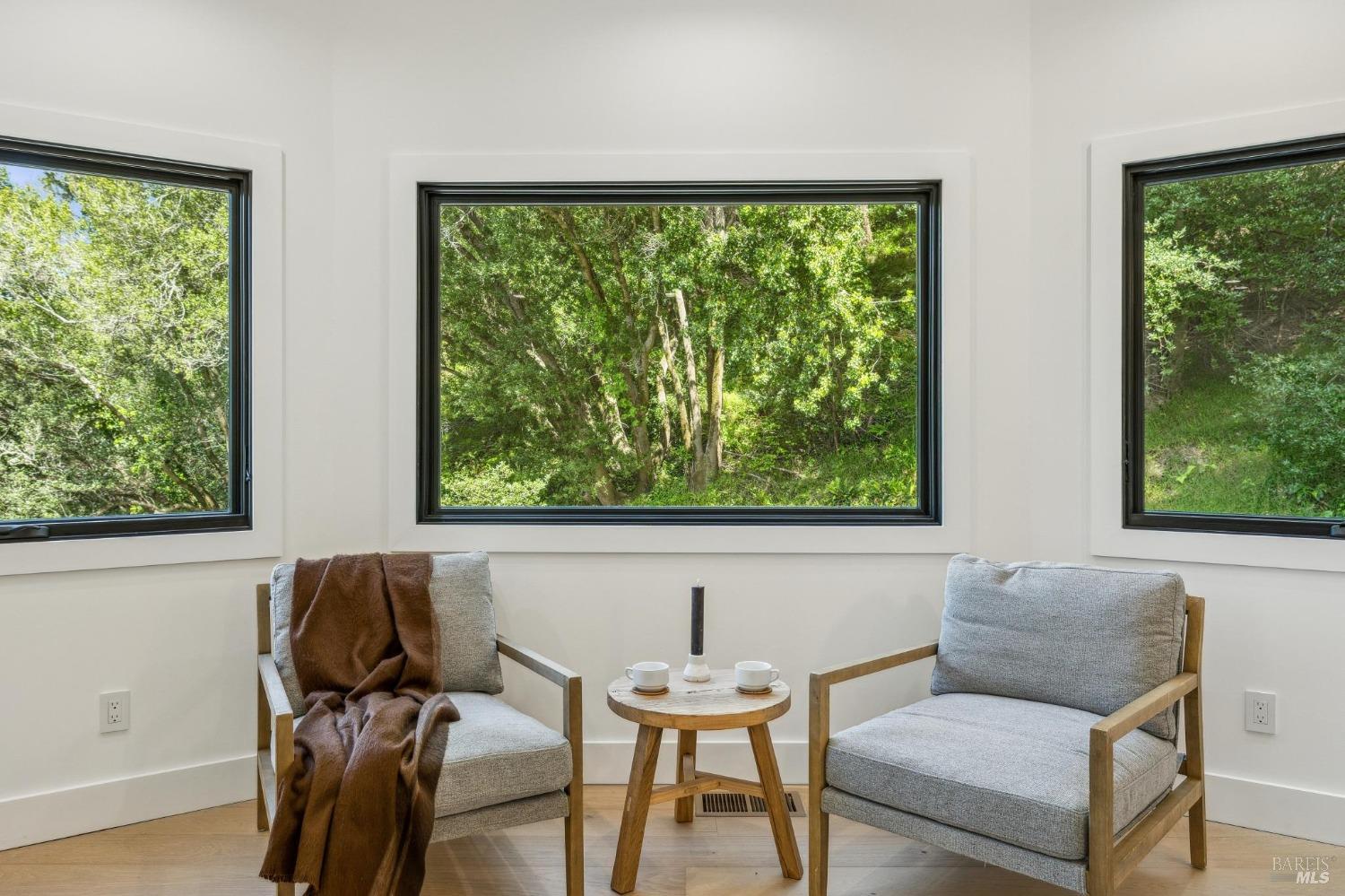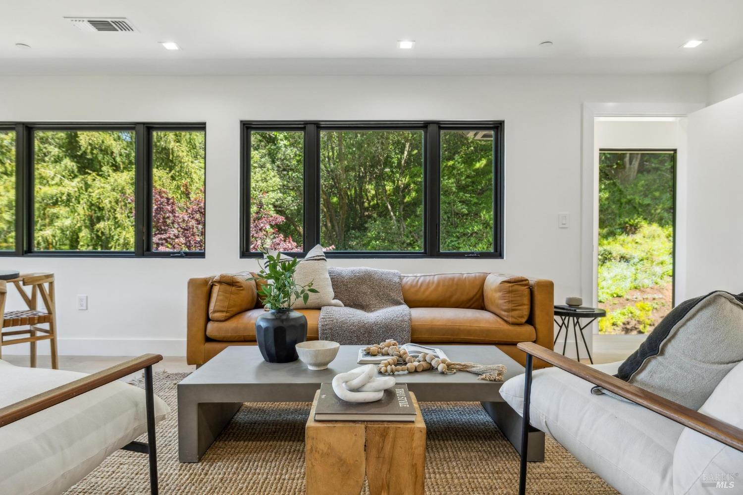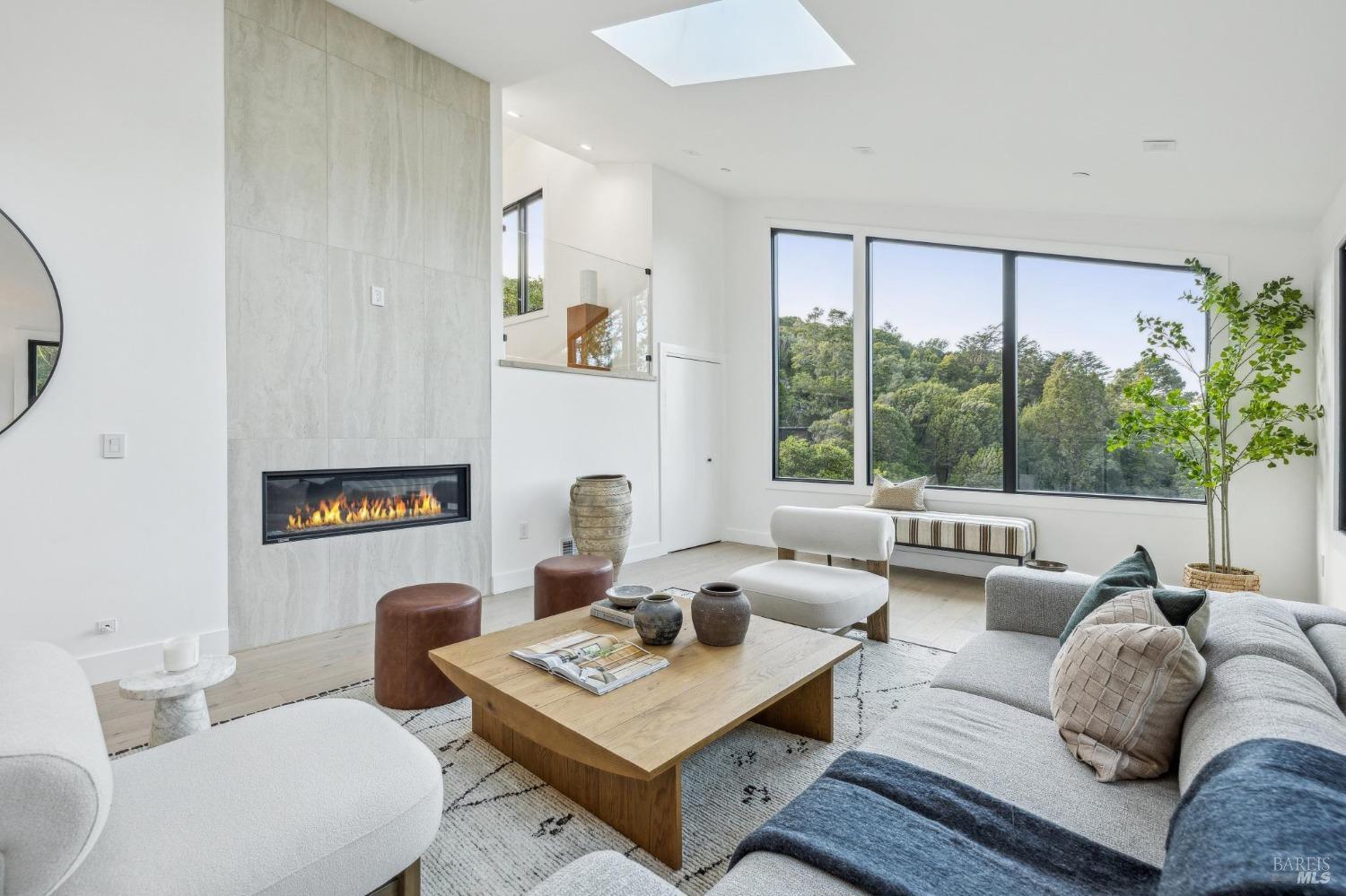 Perched on nearly 1.5 acres of private hillside in desirable Homestead Valley, this fully rebuilt contemporary residence offers an extraordinary combination of scale, style, and serenity. The home spans approximately 4,450 square feet of refined living space, offering 5 bedrooms, 4 full bathrooms, and a flexible layout designed for modern living. This light filled home unfolds across multiple levels with soaring ceilings, expansive decks, and sweeping views. The clean modern architecture harmonizes beautifully with its natural surroundings while showcasing the property's exceptional privacy. With beautifully reimagined interiors and sleek finishes, this is a property that lives as impressively as it shows. Included is a sizable luxurious primary suite, wide open outdoor entertaining space, two separate laundry areas, generous storage, and parking for 6 vehicles. This home offers a thoughtfully designed in-law space ideal for extended family, or guests, and ensures both convenience and privacy throughout. With Easy access to Highway 101, come experience this move-in-ready home that's just a stone's throw from Mill Valley's award-winning schools, vibrant shops, restaurants, and hiking trails.