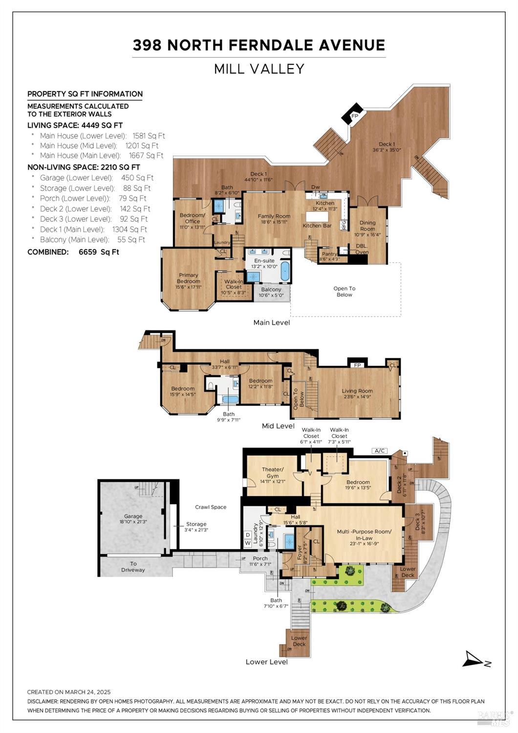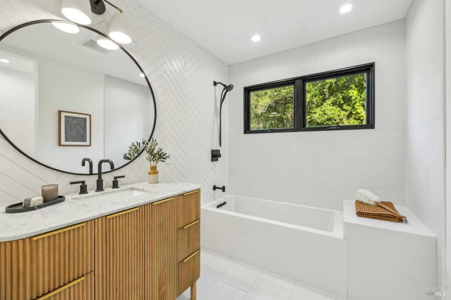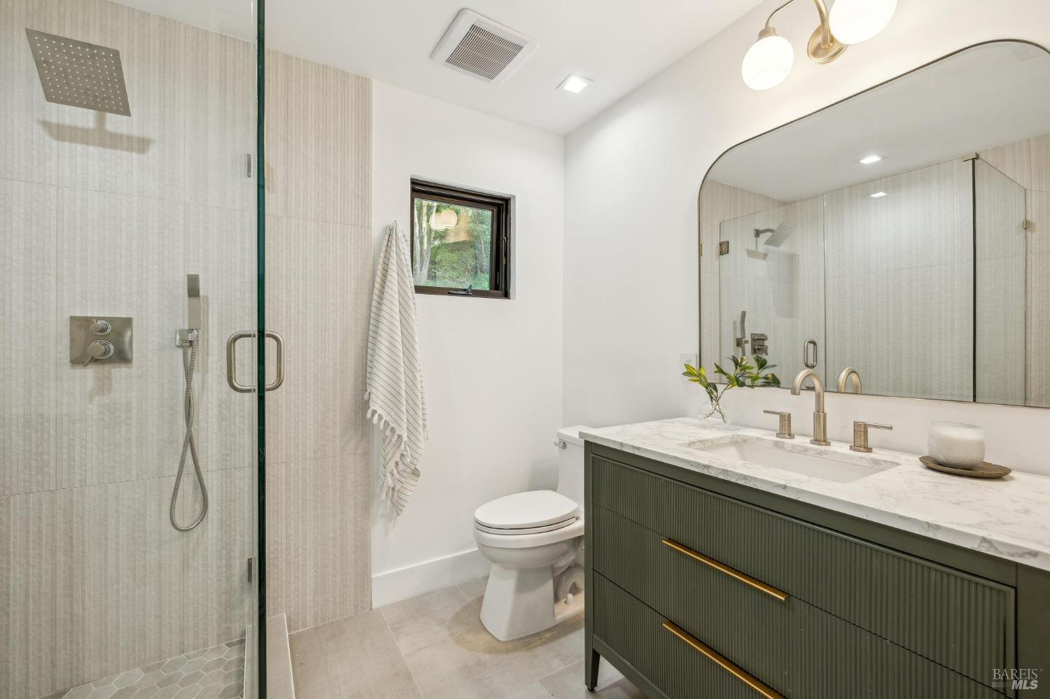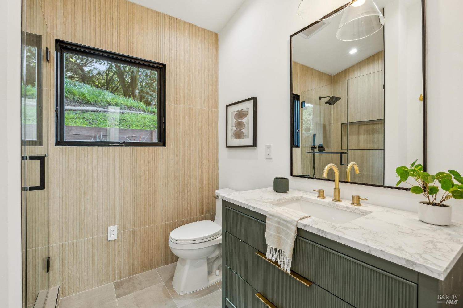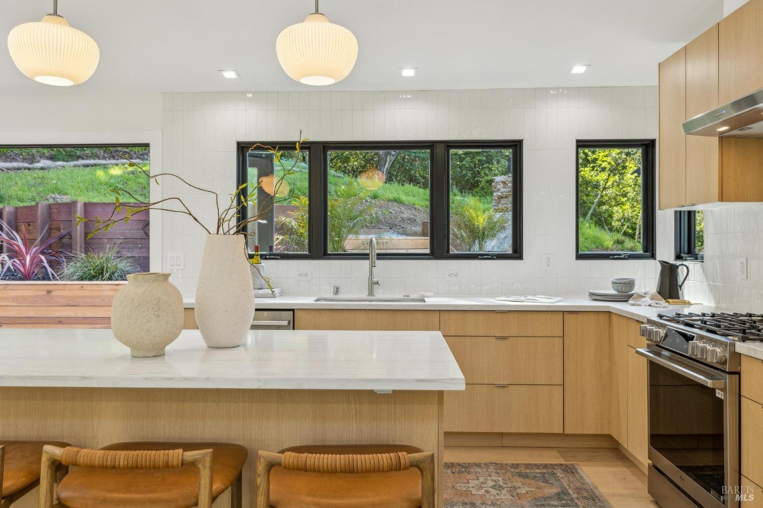 Perched on nearly 1.5 acres of private hillside in desirable Homestead Valley, this fully rebuilt contemporary residence offers an extraordinary combination of scale, style, and serenity. The home spans approximately 4,450 square feet of refined living space, offering 5 bedrooms, 4 full bathrooms, and a flexible layout designed for modern living. This light filled home unfolds across multiple levels with soaring ceilings, expansive decks, and sweeping views. The clean modern architecture harmonizes beautifully with its natural surroundings while showcasing the property's exceptional privacy. With beautifully reimagined interiors and sleek finishes, this is a property that lives as impressively as it shows. Included is a sizable luxurious primary suite, wide open outdoor entertaining space, two separate laundry areas, generous storage, and parking for 6 vehicles. This home offers a thoughtfully designed in-law space ideal for extended family, or guests, and ensures both convenience and privacy throughout. With Easy access to Highway 101, come experience this move-in-ready home that's just a stone's throw from Mill Valley's award-winning schools, vibrant shops, restaurants, and hiking trails.