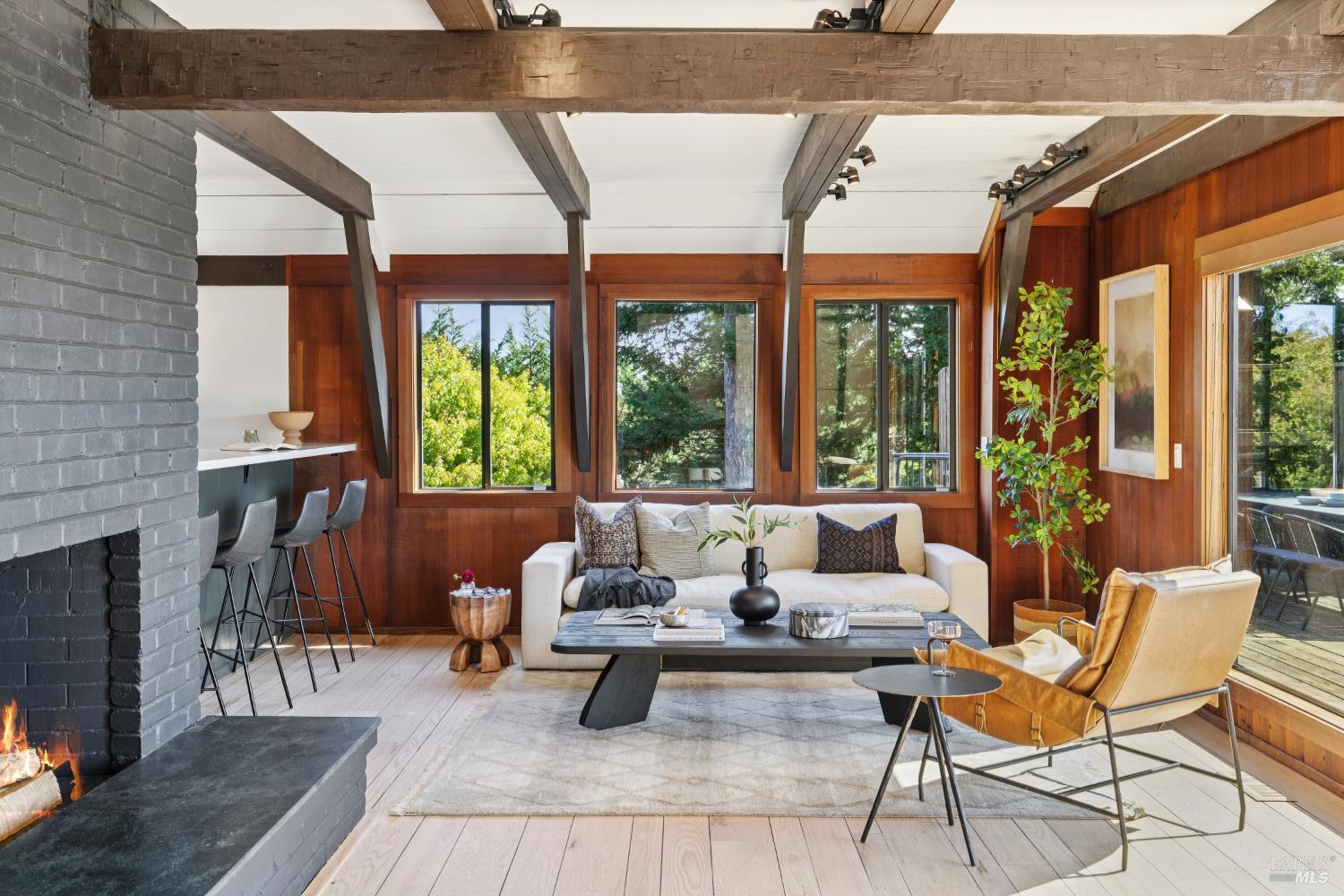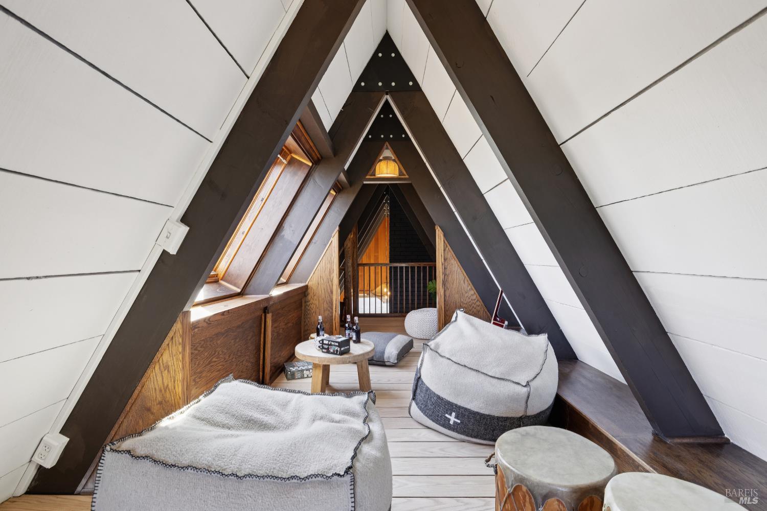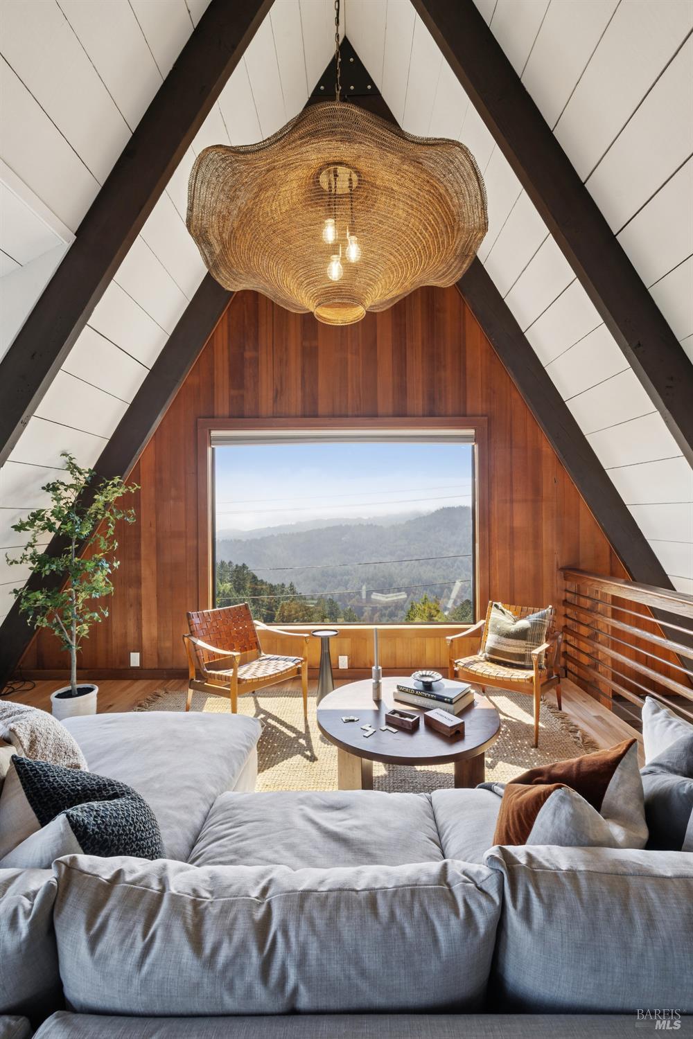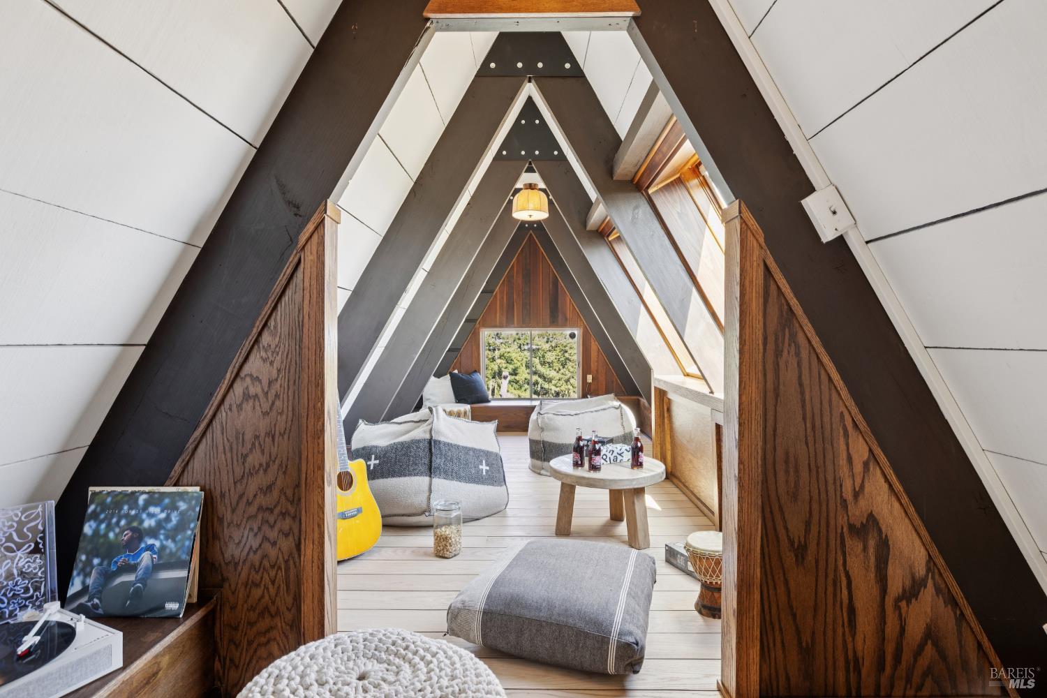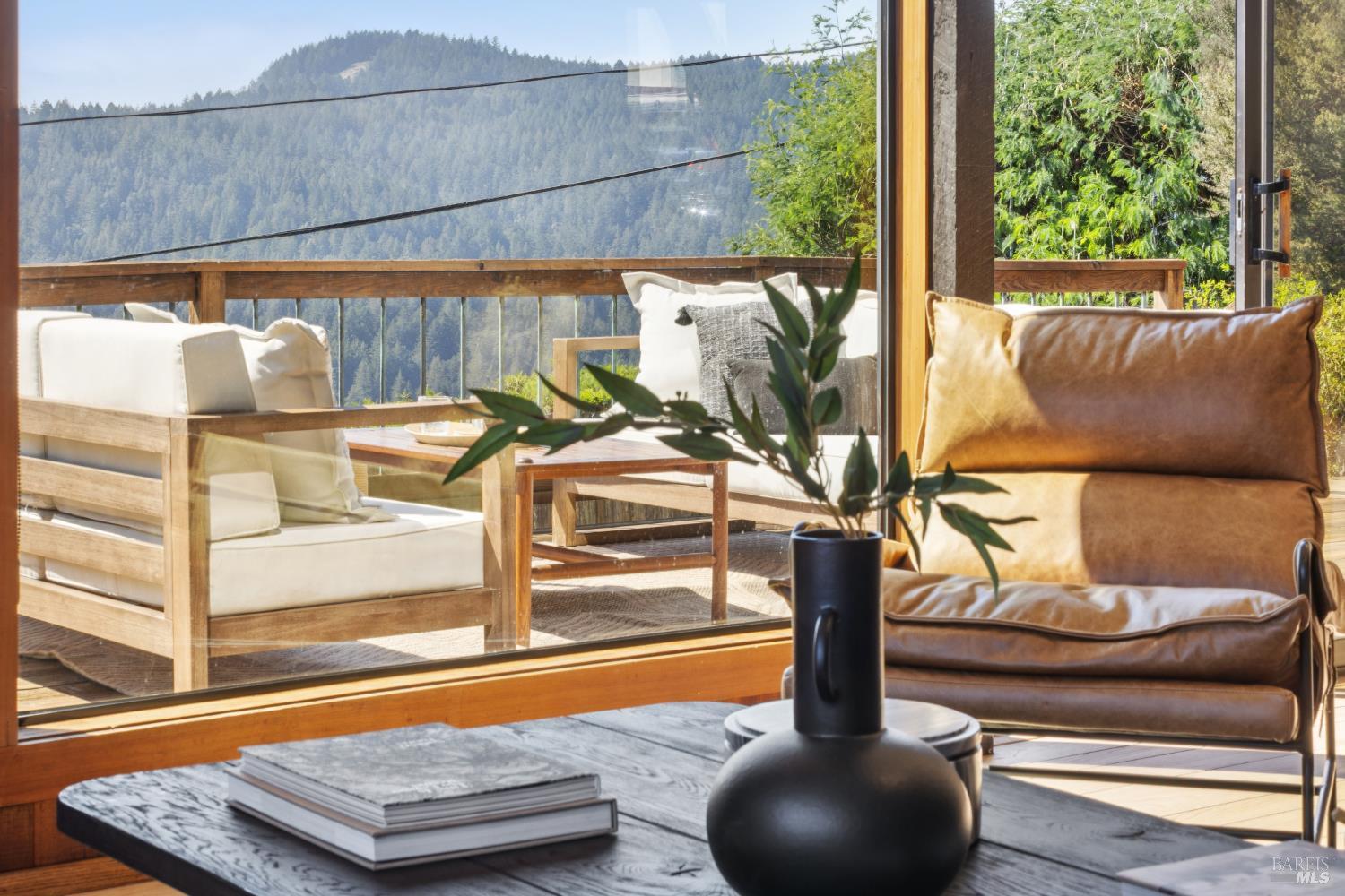 Rare architecturally striking A-frame retreat where sweeping ocean + bay views meet modern design creating a sanctuary for the soul. There is a rich sense of history w/ the warmth of wood + beam ceilings elevated by designer touches. Enjoy an open floor plan that soaks in the light filled views & invites you to step outside to expansive outdoor areas perfect for sunset barbecues & starlit gatherings. The community areas bright w/ expansive vistas anchor the home w/ a perfect flow between the designer kitchen, bar seating, dining area & the living room w/ a cozy wood burning fireplace. The private primary suite is also on the main level w/ direct deck access & stunning spa-like bath. Upstairs, a dramatic family room w/ soaring ceilings captures incredible ocean views. A spacious bedroom w/ bay views, previously two rooms (easily converted back) & a 2nd remodeled bath complete this level. Above it all, a whimsical loft offers bay vistas + possibilities for a 4th bedroom, office or play space. Set on a private cul-de-sac enclave, on an expansive 8,250 sqft lot w/ gardens, a redwood grove, garden shed, storage & wine cellar. Minutes to DTMV, distinguished schools, Muir Woods + Beaches. Strolling distance to the Muir Woods Park Comm Assoc, Mt Home Inn & Tourist Club