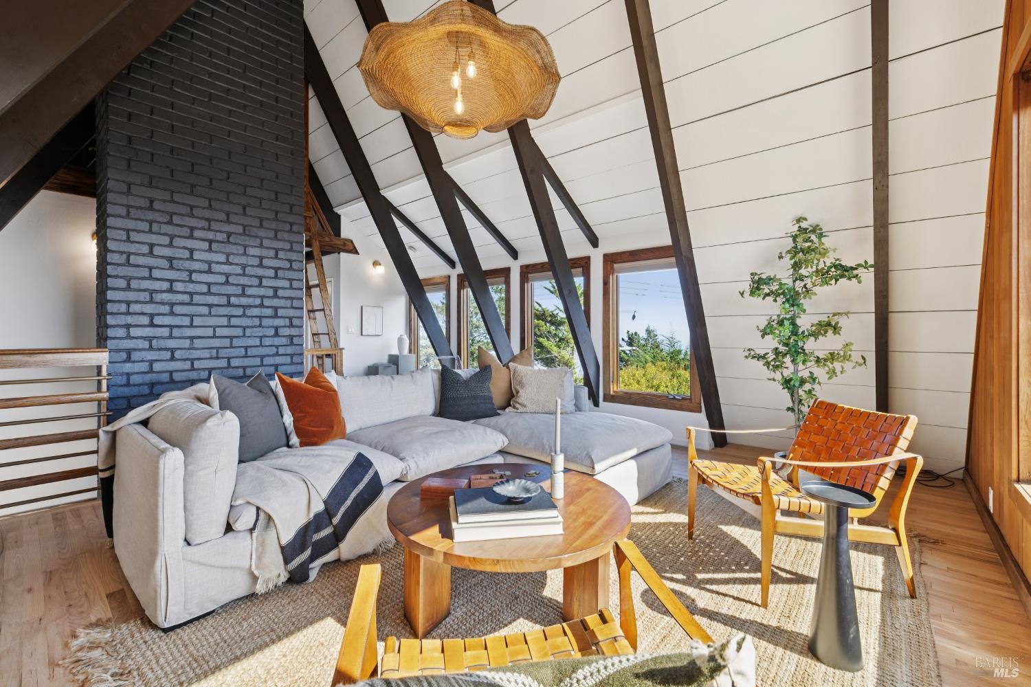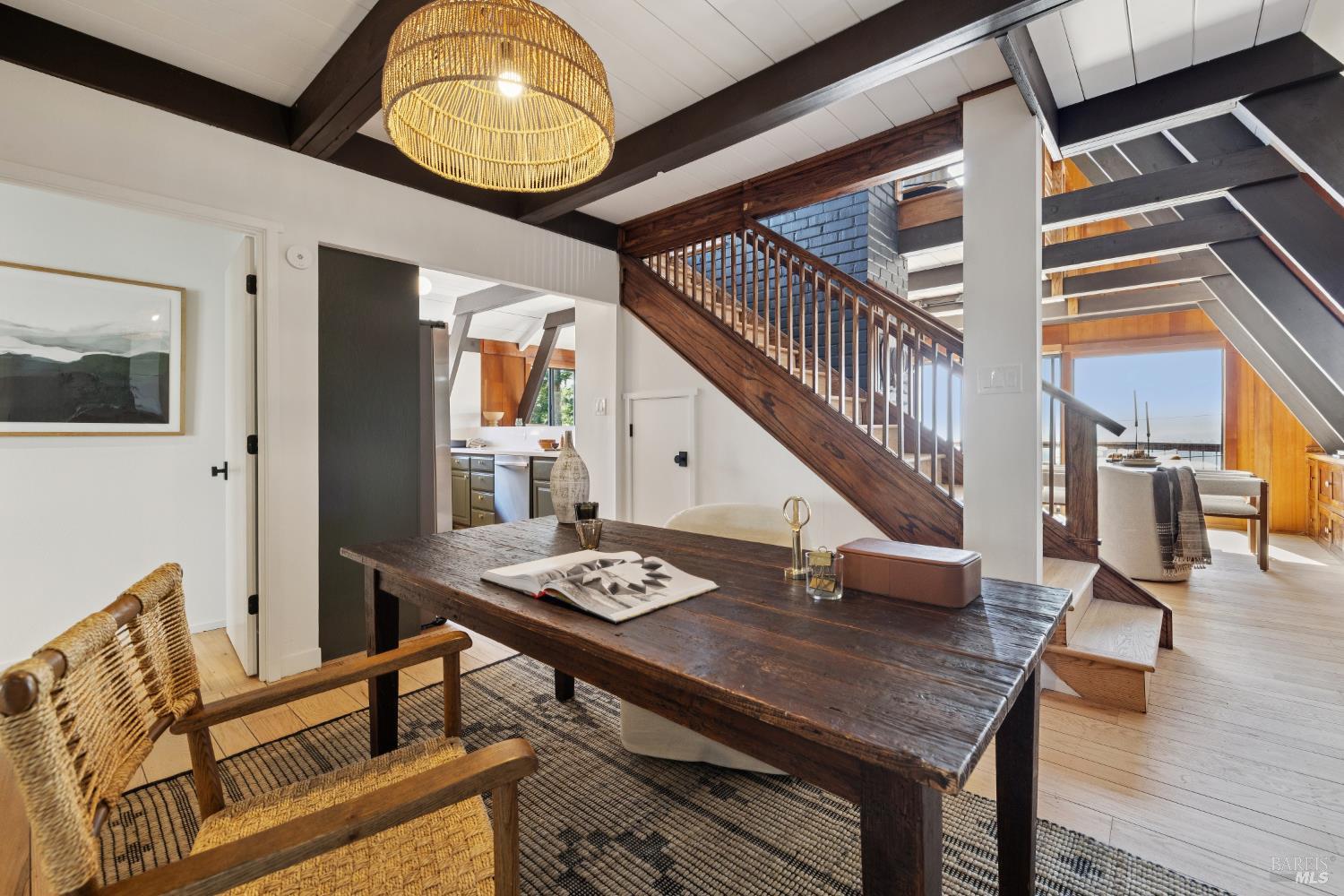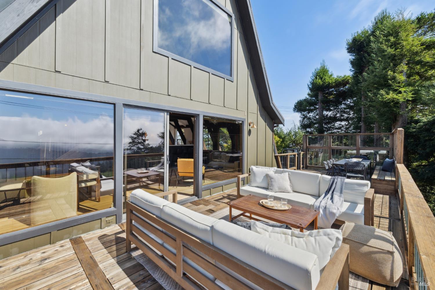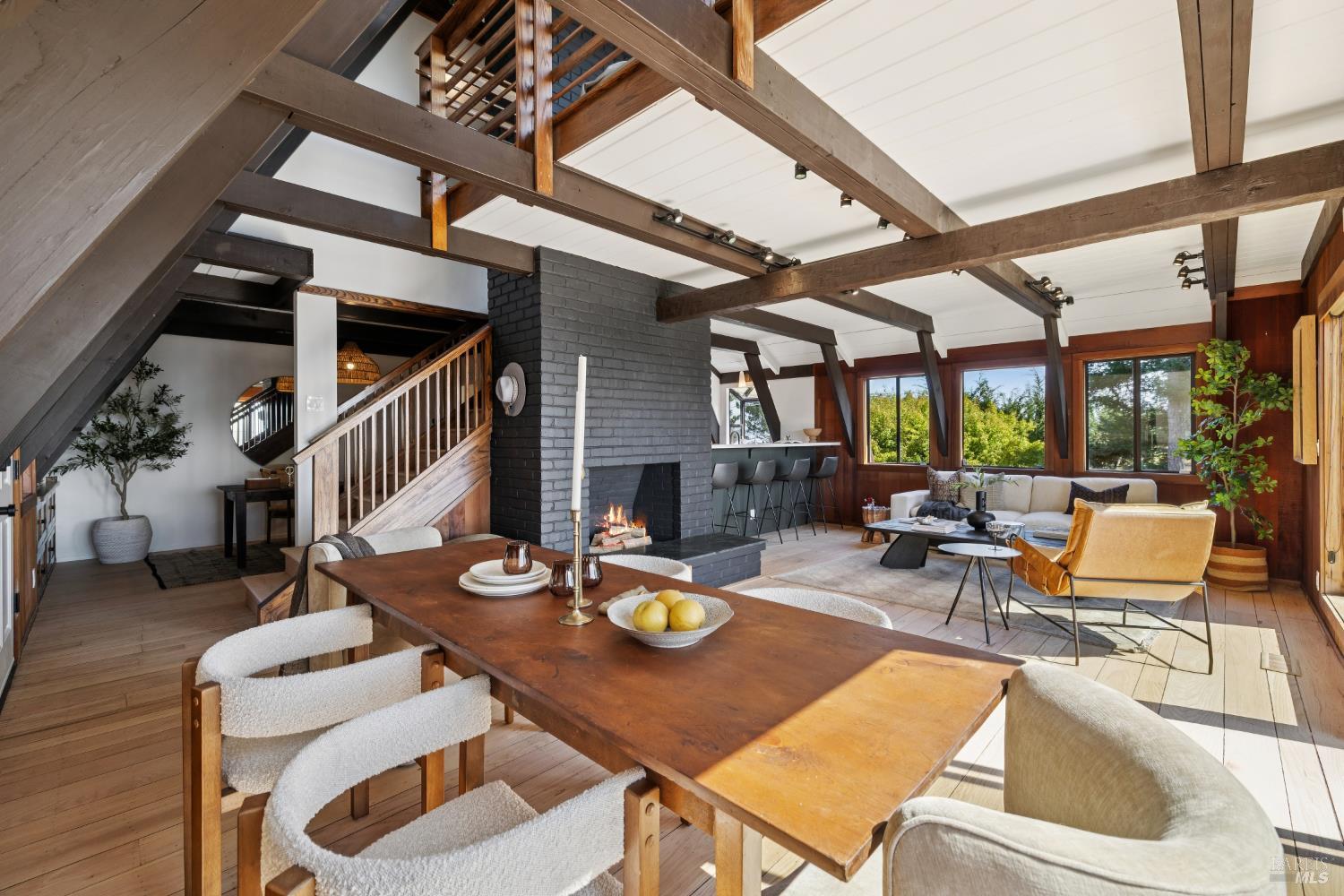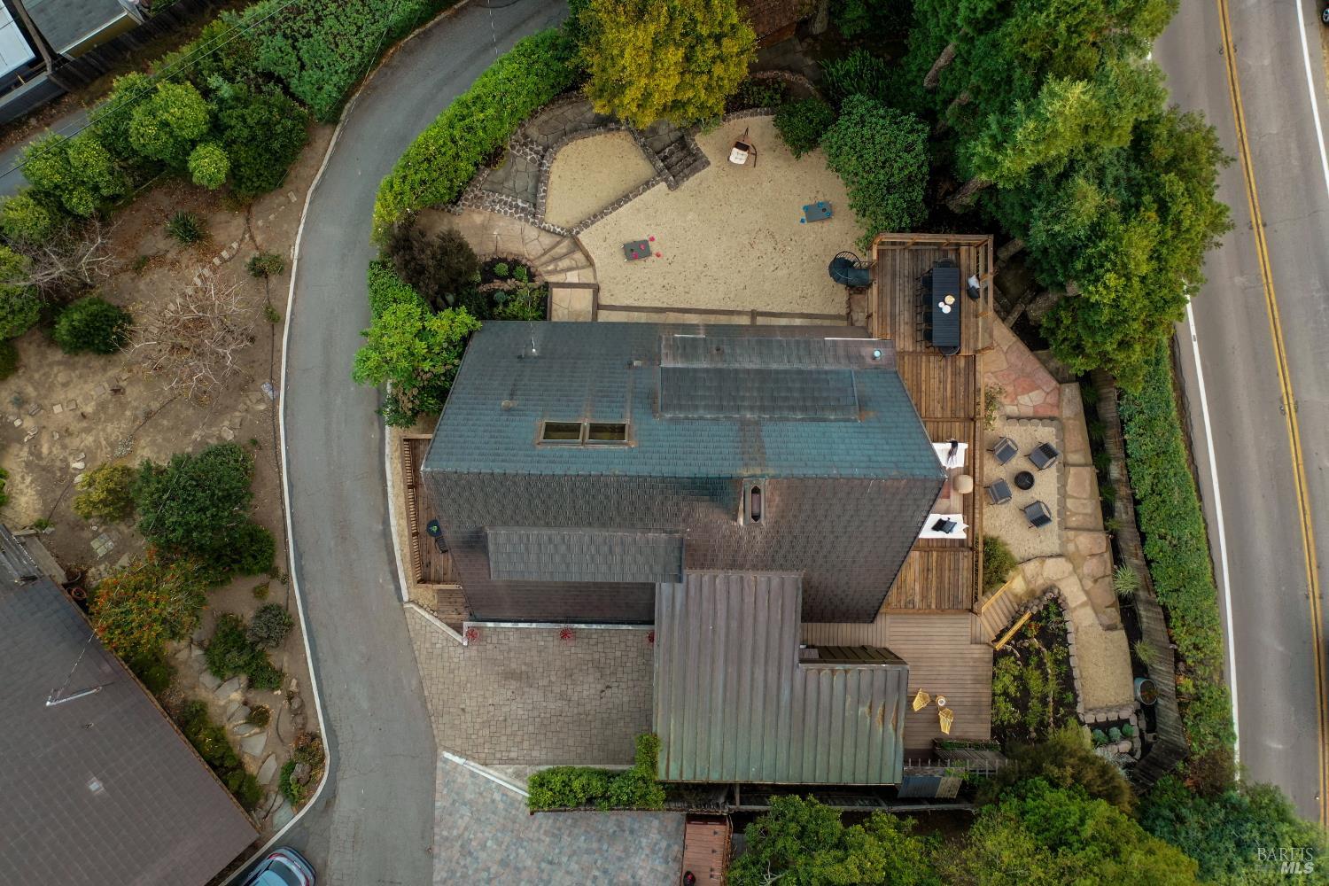 Rare architecturally striking A-frame retreat where sweeping ocean + bay views meet modern design creating a sanctuary for the soul. There is a rich sense of history w/ the warmth of wood + beam ceilings elevated by designer touches. Enjoy an open floor plan that soaks in the light filled views & invites you to step outside to expansive outdoor areas perfect for sunset barbecues & starlit gatherings. The community areas bright w/ expansive vistas anchor the home w/ a perfect flow between the designer kitchen, bar seating, dining area & the living room w/ a cozy wood burning fireplace. The private primary suite is also on the main level w/ direct deck access & stunning spa-like bath. Upstairs, a dramatic family room w/ soaring ceilings captures incredible ocean views. A spacious bedroom w/ bay views, previously two rooms (easily converted back) & a 2nd remodeled bath complete this level. Above it all, a whimsical loft offers bay vistas + possibilities for a 4th bedroom, office or play space. Set on a private cul-de-sac enclave, on an expansive 8,250 sqft lot w/ gardens, a redwood grove, garden shed, storage & wine cellar. Minutes to DTMV, distinguished schools, Muir Woods + Beaches. Strolling distance to the Muir Woods Park Comm Assoc, Mt Home Inn & Tourist Club