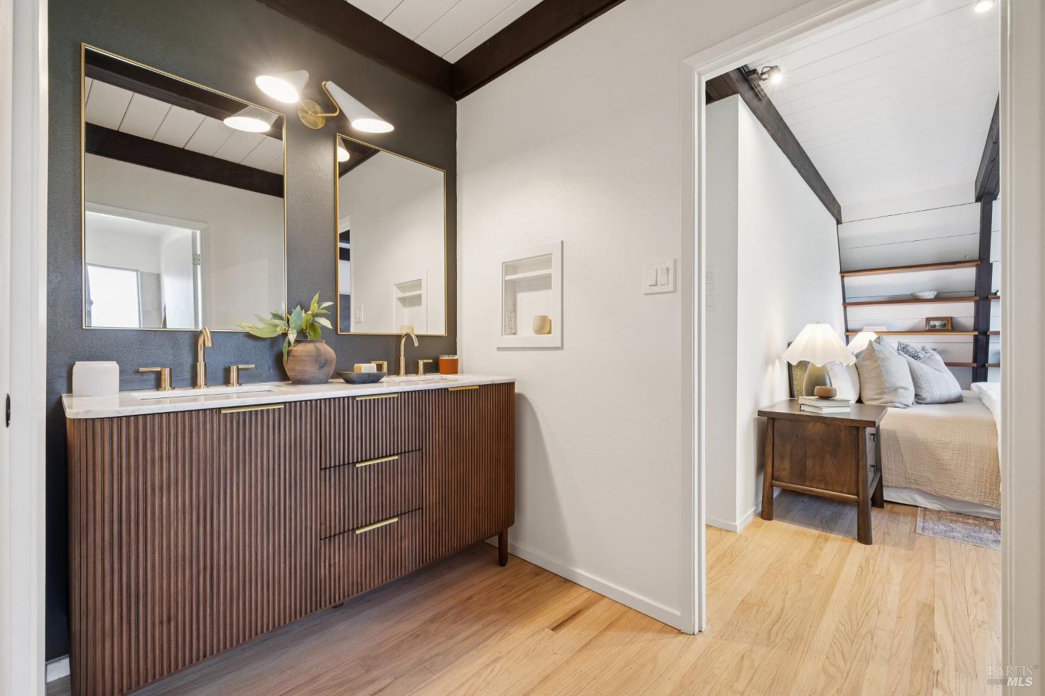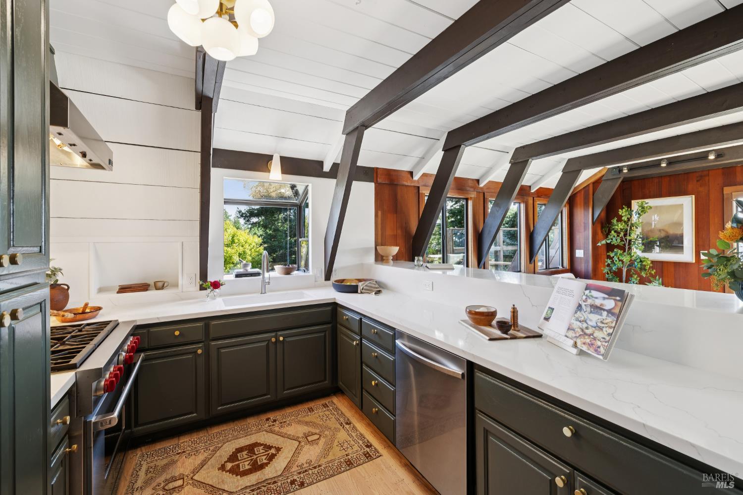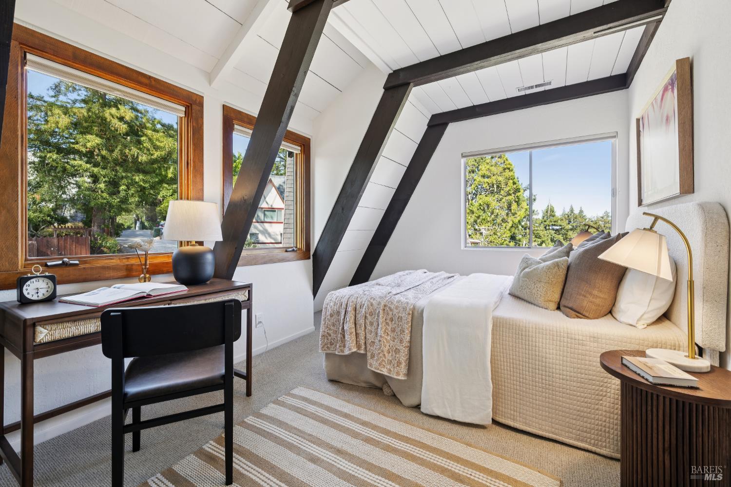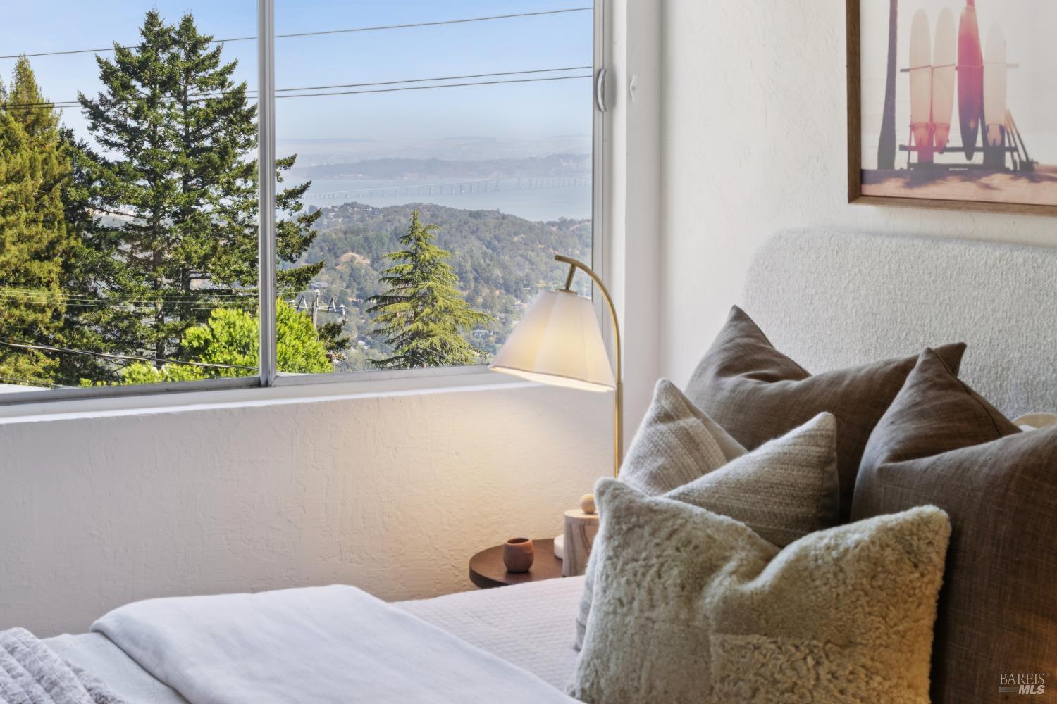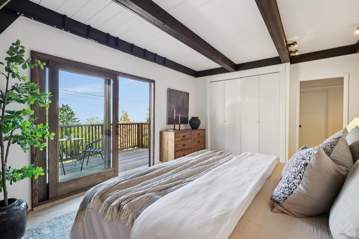 Rare architecturally striking A-frame retreat where sweeping ocean + bay views meet modern design creating a sanctuary for the soul. There is a rich sense of history w/ the warmth of wood + beam ceilings elevated by designer touches. Enjoy an open floor plan that soaks in the light filled views & invites you to step outside to expansive outdoor areas perfect for sunset barbecues & starlit gatherings. The community areas bright w/ expansive vistas anchor the home w/ a perfect flow between the designer kitchen, bar seating, dining area & the living room w/ a cozy wood burning fireplace. The private primary suite is also on the main level w/ direct deck access & stunning spa-like bath. Upstairs, a dramatic family room w/ soaring ceilings captures incredible ocean views. A spacious bedroom w/ bay views, previously two rooms (easily converted back) & a 2nd remodeled bath complete this level. Above it all, a whimsical loft offers bay vistas + possibilities for a 4th bedroom, office or play space. Set on a private cul-de-sac enclave, on an expansive 8,250 sqft lot w/ gardens, a redwood grove, garden shed, storage & wine cellar. Minutes to DTMV, distinguished schools, Muir Woods + Beaches. Strolling distance to the Muir Woods Park Comm Assoc, Mt Home Inn & Tourist Club